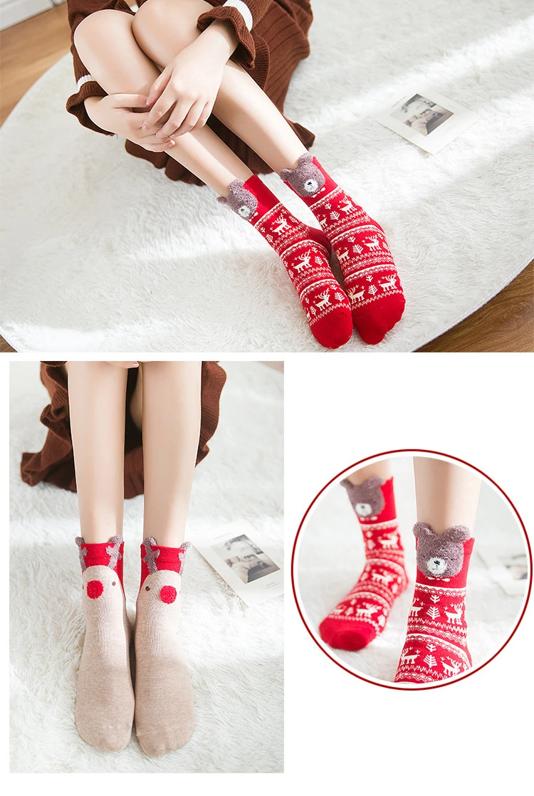 LuanQI/Рождественские хлопковые носки рождественские носки с орнаментом; Коллекция 2022 года; Новогодние носки подарок для женщин и детей; Рождественские украшения; Noel Navidad Natale