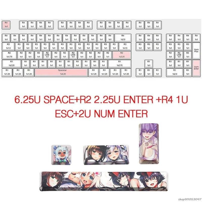 4 шт японского аниме PBT Space Keycaps Ahegao Keycaps 6.25U ESC Spacebar для механической клавиатуры KeycapsОсобенности:-Этот изготовленный на заказ набор ключей полностью изготовлен из сублимированного красителем ПБТ-пластика.-Сублимированная конструкция ПБТ-изготовлена из пластика ПБТ-долгое время считается превосходным материалом keycap-этот MX-совместимый набор является долговечным и устойчивым к выцветанию и сиянию, который происходит после долгих часов за ключами.-Широкий выбор клавиатуры-Совместимость с большинством механических клавишных переключателей, таких как cherry MX/Gateron/Outemu, Подходит для большинства стандартных ANSI клавиатуры, хороший выбор для вас, чтобы сделать своими руками вашу механическую клавиатуру.-Устойчивы к выцветанию-колпачки изготовлены из сверхтолстых стен, которые подходят для интенсивных игр, которые производят приятные, твердые нажатия клавиш.-Изготовлен из ПБТ-материала;-Толщина PBT составляет около 1,4 мм OEM профиль.Посылка включает:1 х 6,25u пробел keycap1 x R2 2.25U введите keycap1 x R4 1U Esc keycap1x2U Num введите keycap