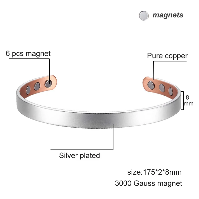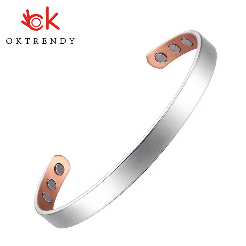 Oktrendy браслет из чистой меди магнитный для мужчин женщин мужчин манжеты 8 мм регулируемый браслет энергия здоровья яркие серебряные медные браслеты