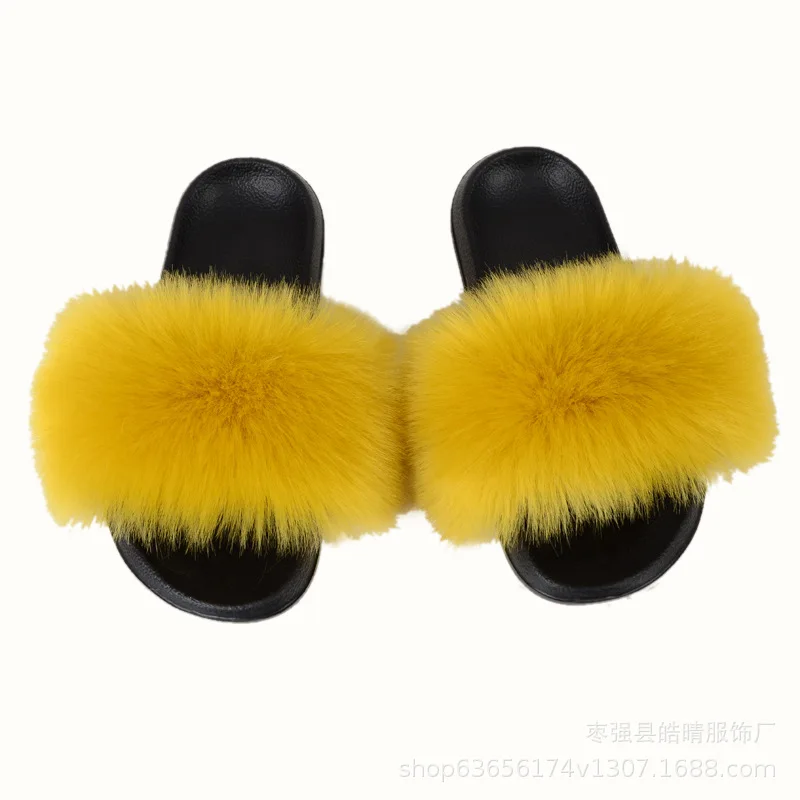 Шлепанцы женские меховые, мягкие сланцы из лисьего меха, повседневные сандалии с Raccon, пушистая плюшевая обувь, летние