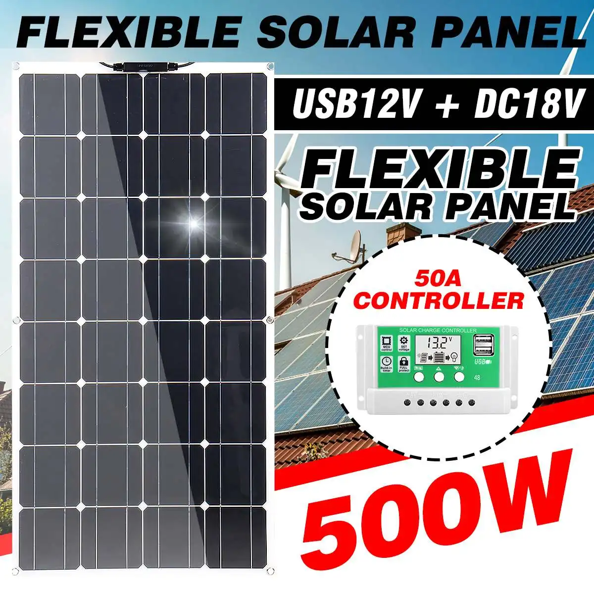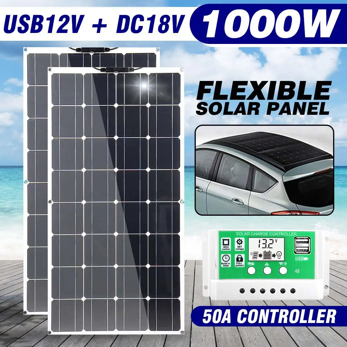 Солнечная панель 500 Вт, 1000 Вт, внешний аккумулятор для автомобиля, фургона, яхты, лодки, зарядное устройство с контроллером 30 А