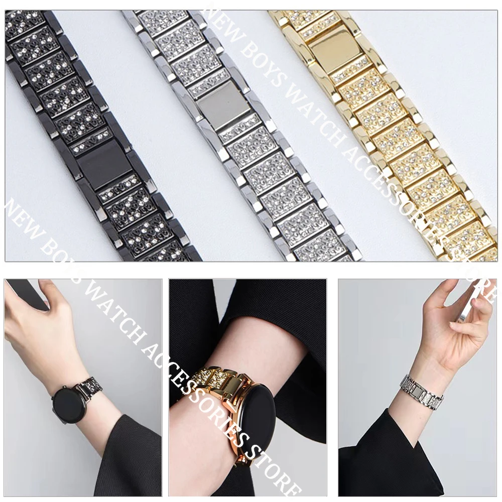 Браслет металлический со стразами для часов, браслет для Samsung Active Galaxy Gear s2 Amazfit Bip Classic Huawei Gt 2 Pro 42 46 мм, 20 мм 22 мм