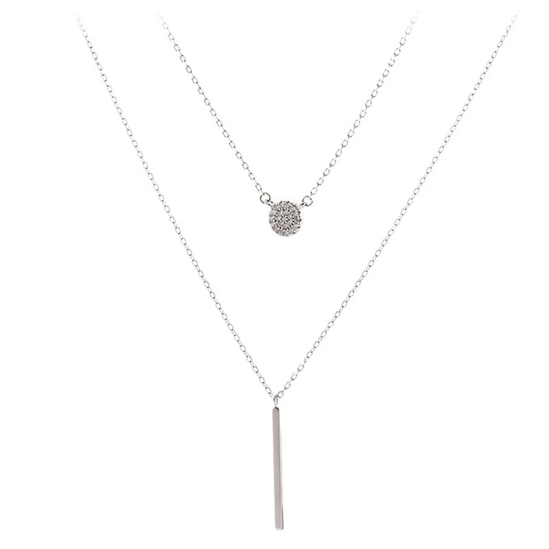 Женское Двухслойное длинное ожерелье из серебра 925 пробы с цирконом