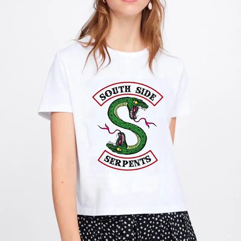 Футболка Riverdale женская с принтом South Side Serpents, летняя рубашка в стиле Харадзюку, Ullzang, топ со змеиным принтом