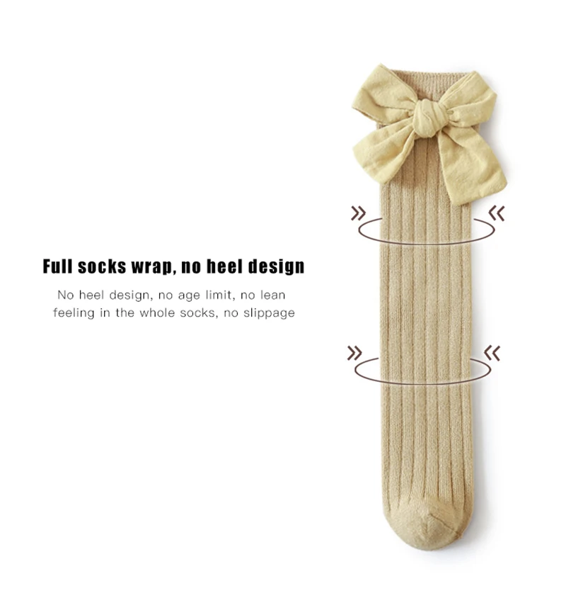 Носки с большим бантом для новорожденных девочек, детские носки без пятки, лето, весна, осень, Нескользящие хлопковые чулки принцессы, От 1 до 12 лет