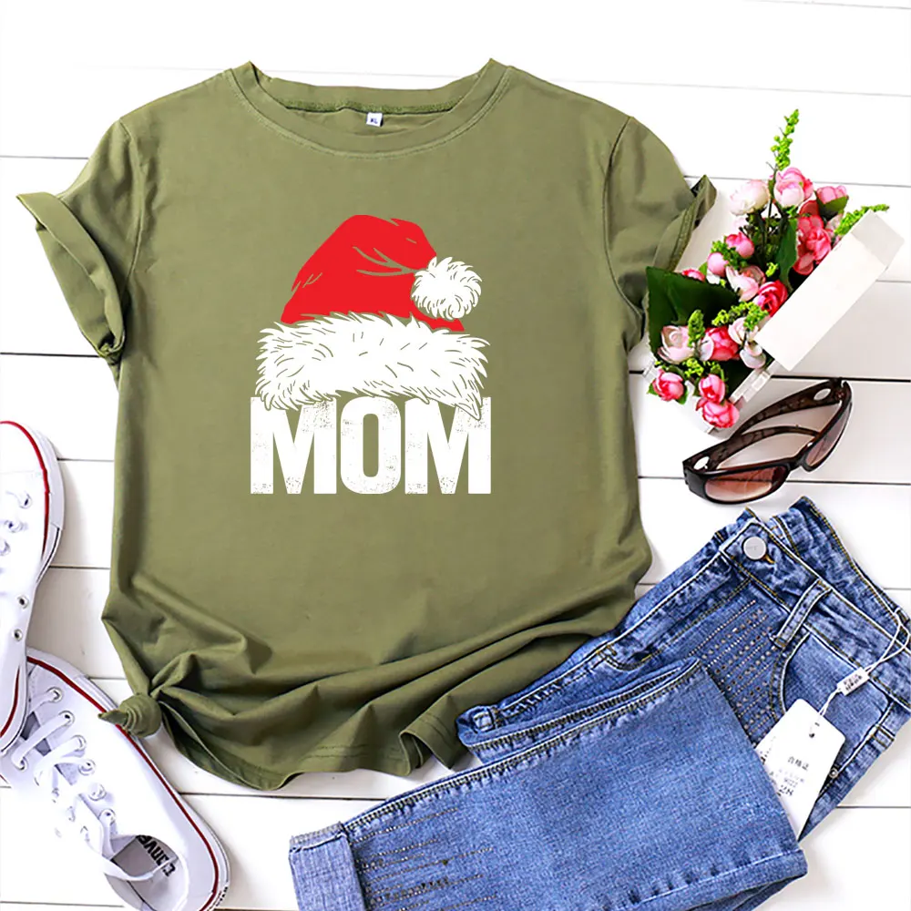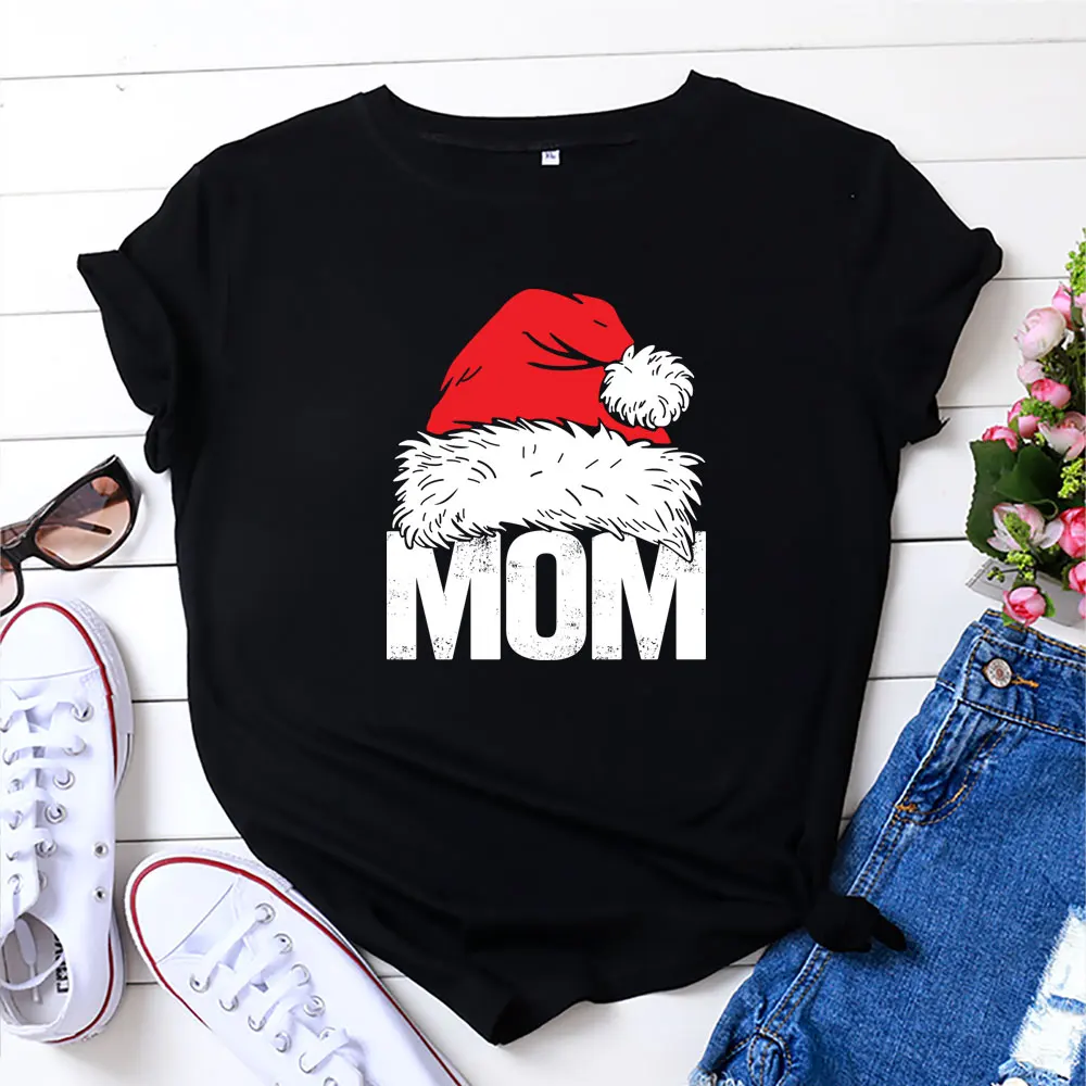 Летняя футболка 2021 года, женская футболка большого размера, рубашка с рождественским принтом, футболка с круглым вырезом и короткими рукавами, хлопковый женский топ, S-5XL