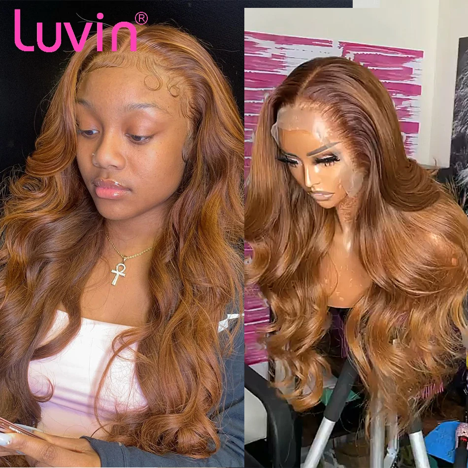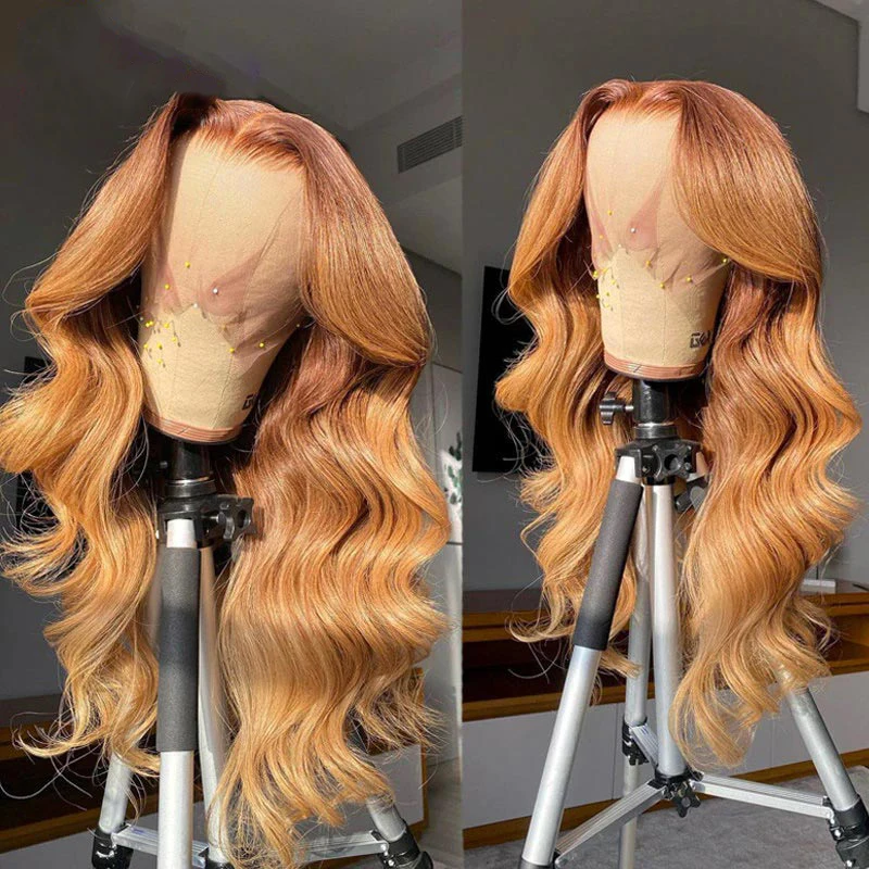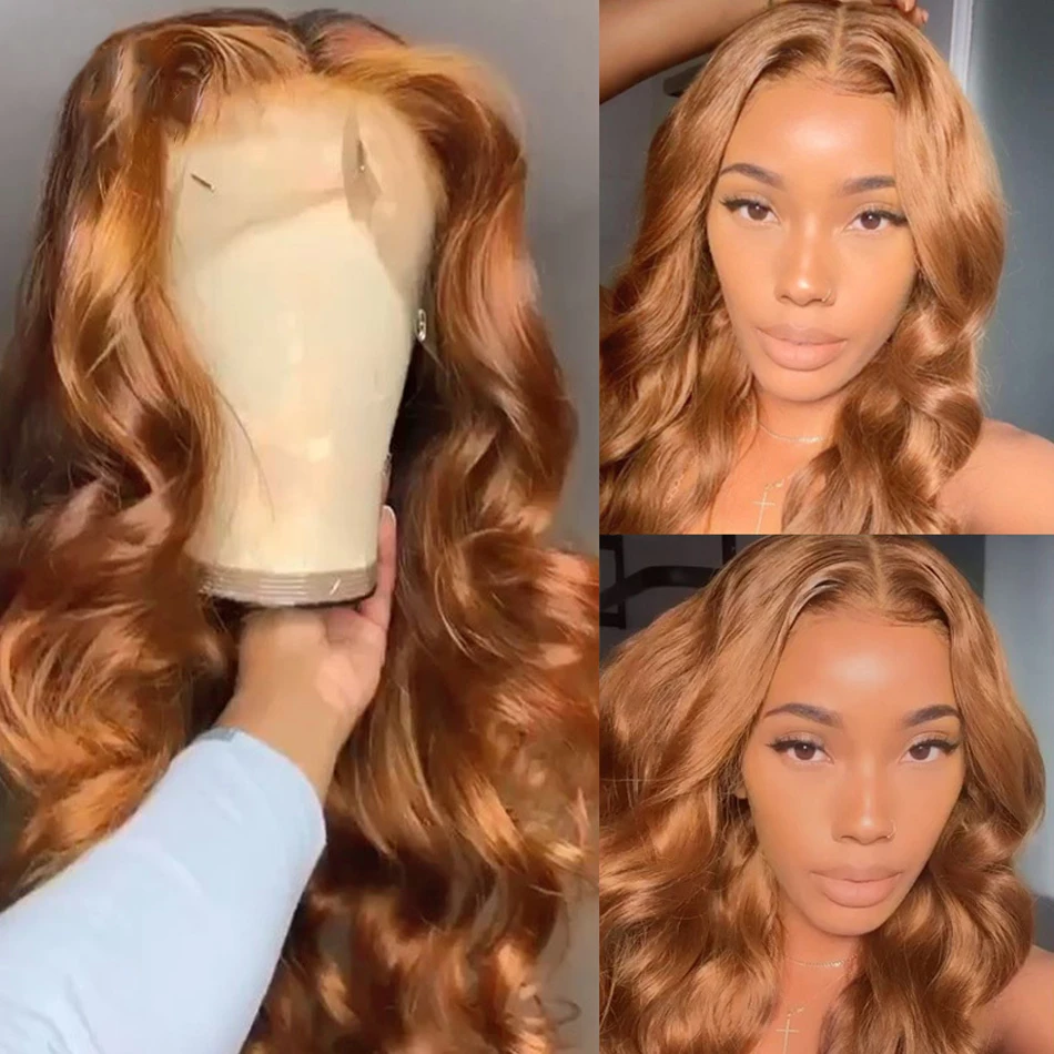 30 32 дюймов, с подсветкой, волнистые, Имбирные, коричневые, оранжевые, 150% т, кружевные передние парики, человеческие волосы для черных женщин, бразильские волосы Remy