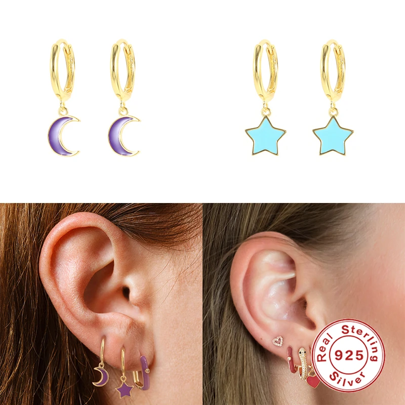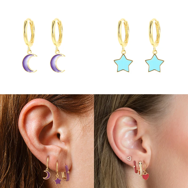 Женские серьги с эмалью CANNER, звезда, луна, масло, серьги для женщин, серебряные серьги, кольца, серьги, платформа, ювелирные изделия 2021