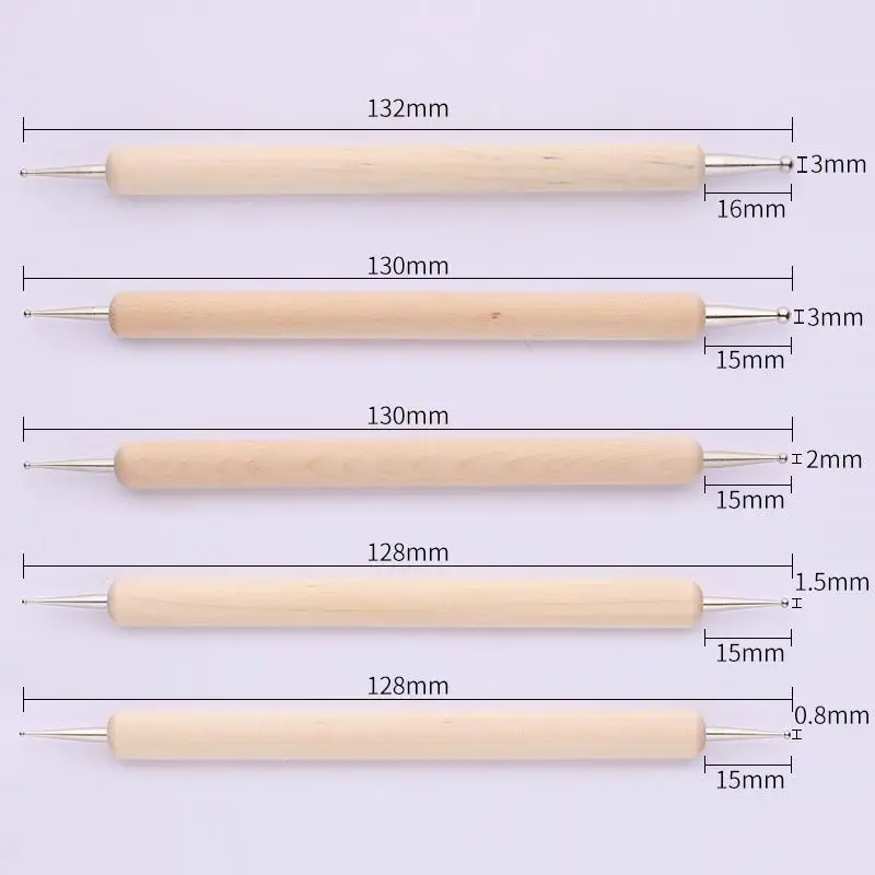 Деревянная ручка с двумя головками для точечного оформления, инструмент для мрамора, инструменты для точечного оформления ногтей для дизайна ногтей, наборы кистей для маникюра