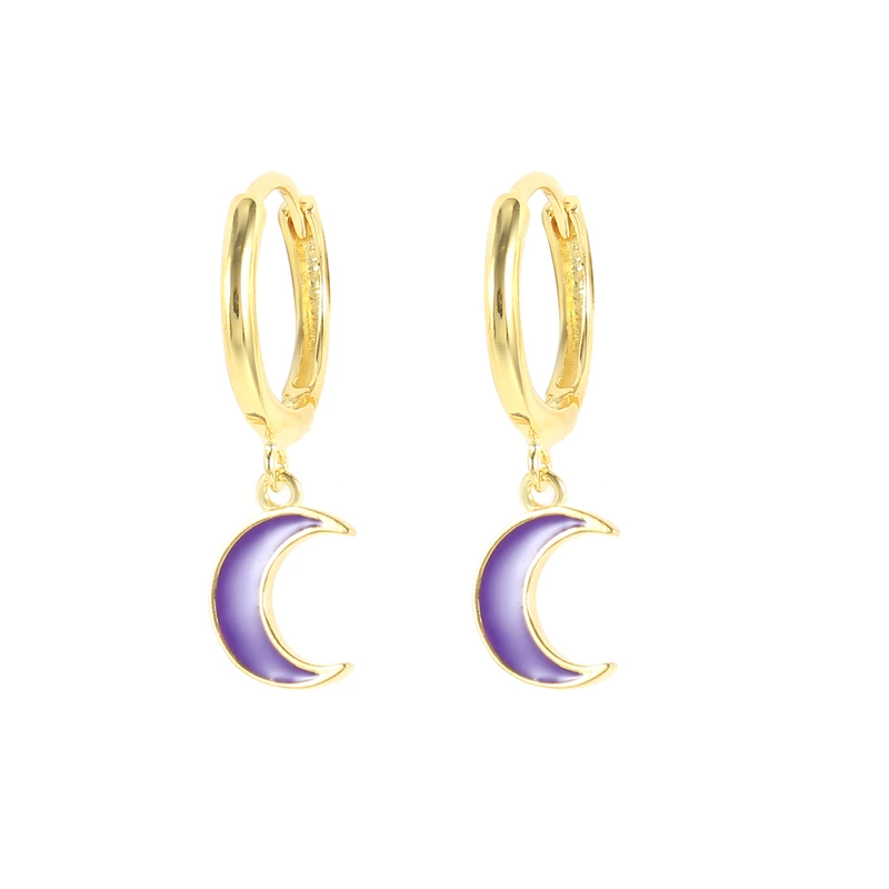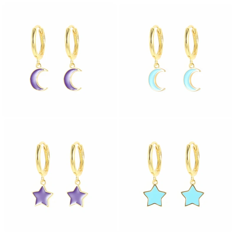 【Тип товара 】:Серьги-кольца с эмалью и звездой и Луной