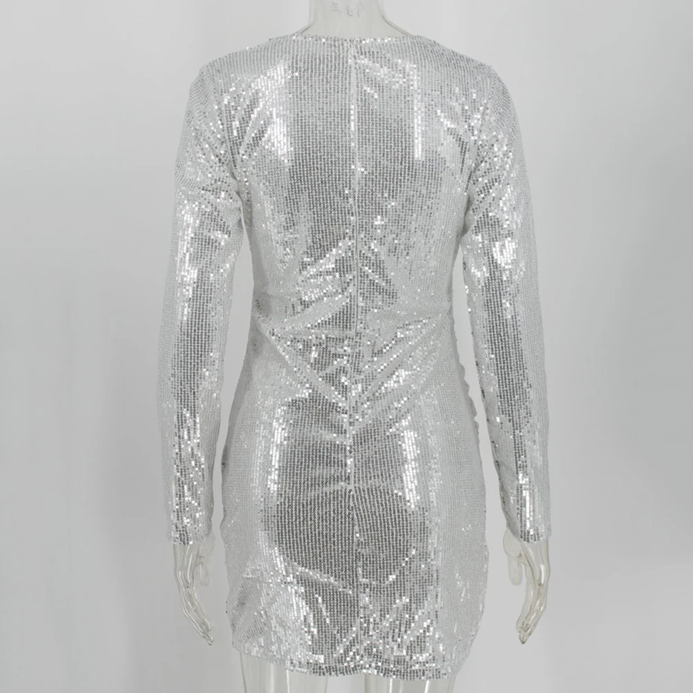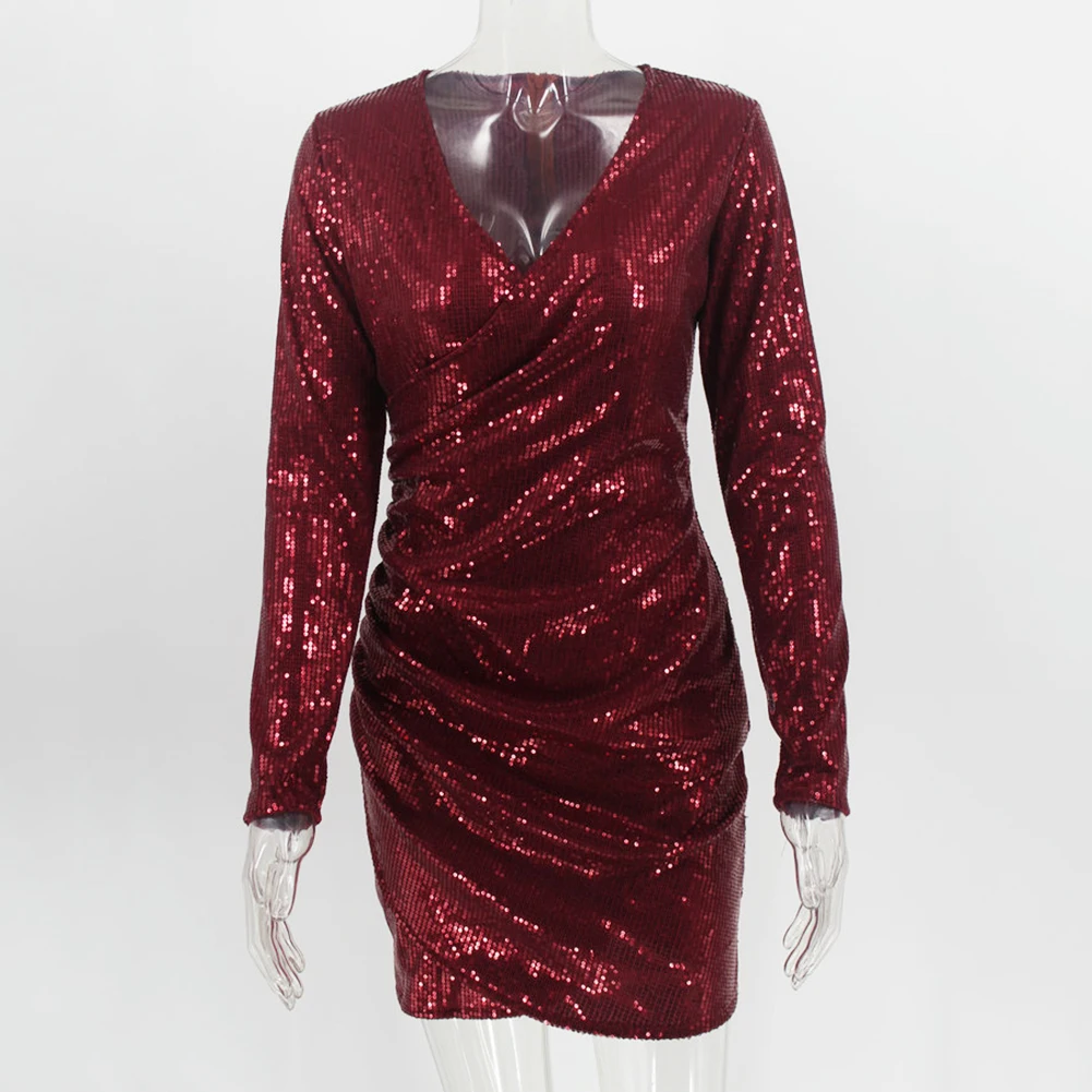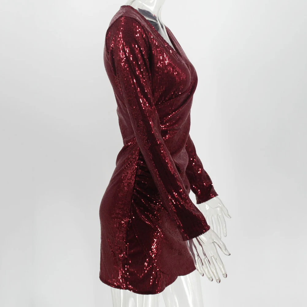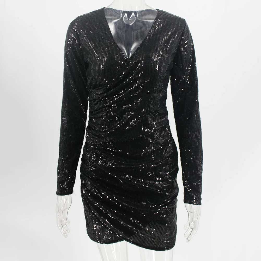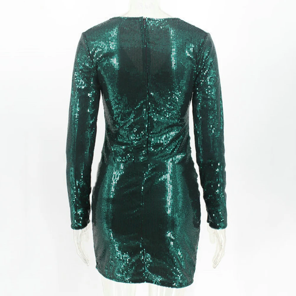 Женское мини-платье с глубоким V-образным вырезом и разрезом