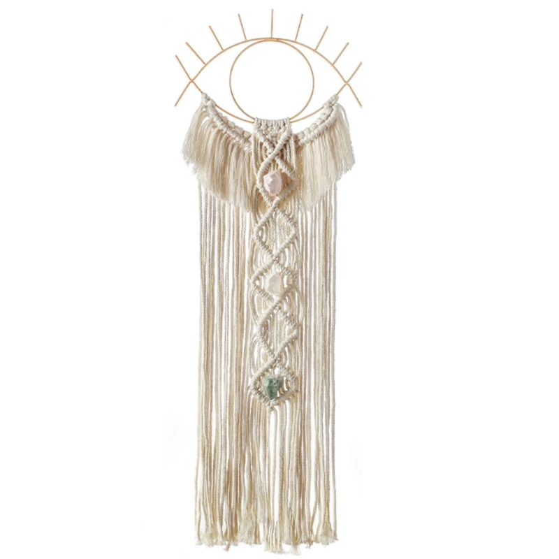 Макраме ручной работы в марокканском стиле, настенная подвеска сглаза, Ловец снов с искусственным кристаллом, Искусственный драгоценный камень