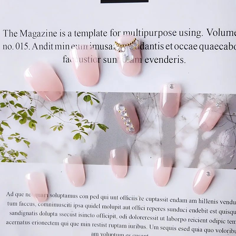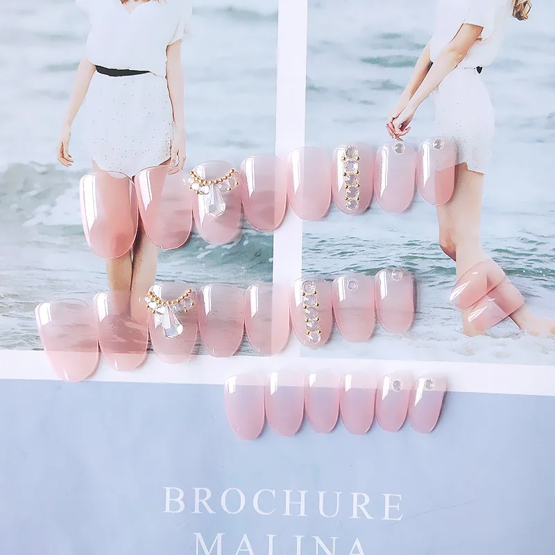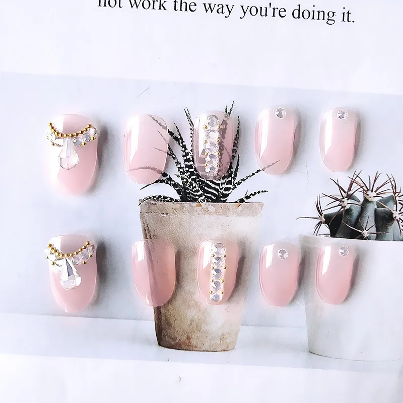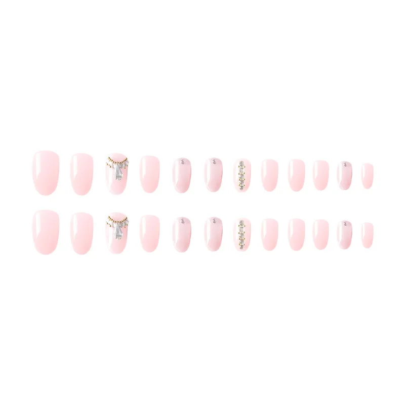 Накладные ногти, 24 шт., роскошная элегантность, 3D блеск, бриллиант, прессованные, розовый, Овальные, Короткие накладные ногти с дизайном JP1774-B3