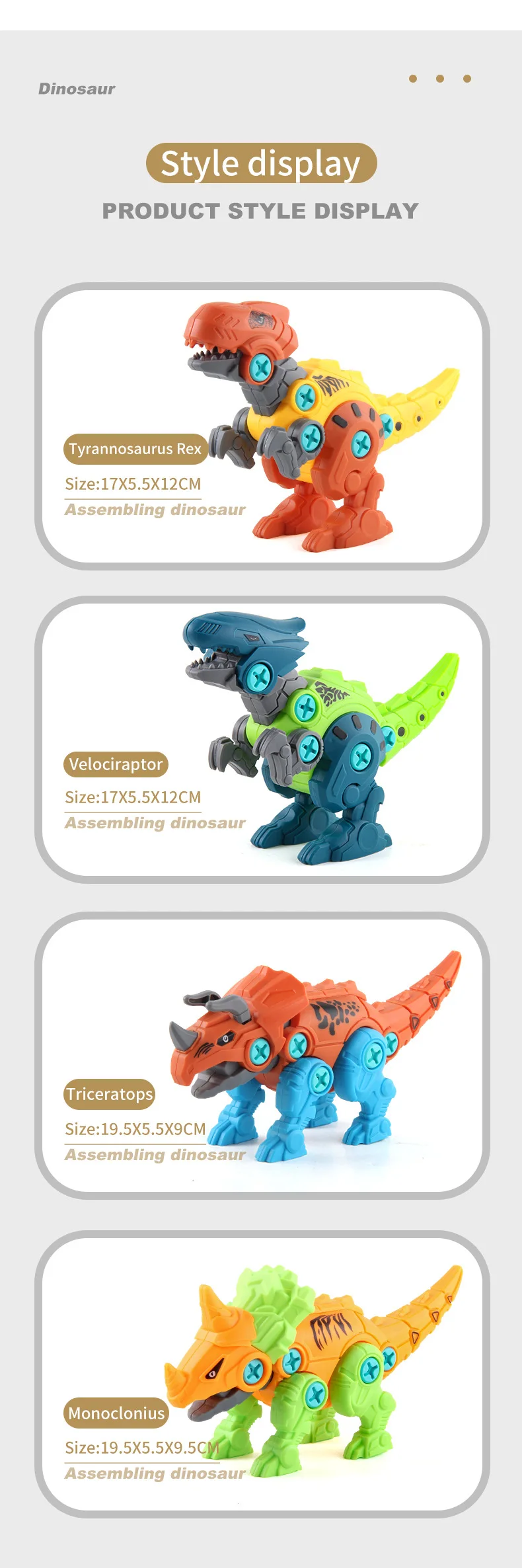 Сборка динозавра, Набор игрушечных динозавров дюйма, с винтовой гайкой