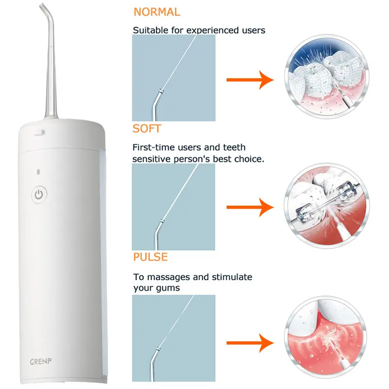Часто задаваемые вопросы (прочитайте перед покупкой)В: как его использовать?О: 1. Установите насадку, и вы услышите звук «щелчок».2. Заполнены чистой водой.3. Выберите подходящий режим, если вы новый пользователь, или ваша резинка чувствительна, мы советуем вам выбрать второй «нежный» режим.4. Подготовьте коробку для хранения воды, Наклоните свое тело вперед, поместите ножевое устройство в рот, держите рот закрытым, чтобы избежать брызг воды.5. Включите ирригатор полости рта, выровняйте зубы или зазор зубов, Вымойте зубы около 1 минуты. (он автоматически выключится через 2 минуты)В: ирригатор полости рта новый пользователь, почему происходит легкий зуд или кровотечение?О: если вы впервые используете ирригатор полости рта, может быть, произойдет небольшое зуд или кровотечение, потому что Десна не используется для глубокой очистки, как это, эта ситуация выветрится через 1-2 недели. Если после 2 недель вы не отбеливаетесь, возможно, у вас есть некоторые заболевания зубов, такие как зубной камень, пародонтит. Мы советуем Вам обратиться к стоматологу, чтобы получить профессиональное решение.В: Почему происходит утечка воды?О: Когда вы держите его горизонтально или наклонно, небольшая боковая утечка нормальная, пожалуйста, не волнуйтесь.Потому что на верхней части резервуара для воды есть отверстие для вентиляции, когда двигатель накачивает воду, уровень воды уменьшается, он образует отрицательное давление в резервуаре, воду нельзя накачивать, если нет отверстия для вентиляции. Все ирригаторы для полости рта имеют одинаковую конструкцию отверстия для вентиляции и небольшую утечку воды.Мы советуем вам держать его в вертикальном положении, чтобы избежать утечки воды.