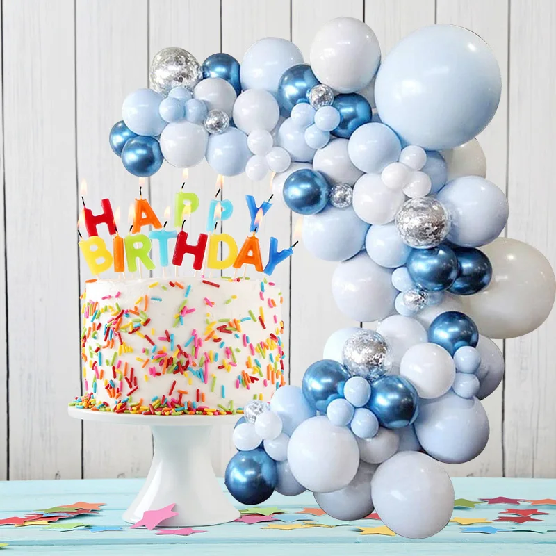 Набор латексных воздушных шаров из 104 предметов синего и серебряного цвета, гирлянда воздушных шаров с бантом, украшение для дня рождения, Хэллоуина, Рождества, свадьбы, вечевечерние, детей