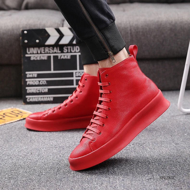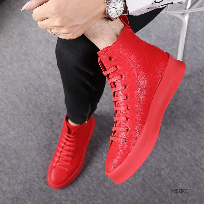 Ботильоны мужские из натуральной кожи, повседневная обувь на заказ, оригинальный дизайн, красные, черные, белые