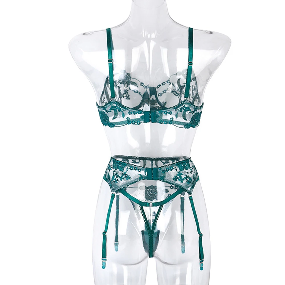 Комплект женского нижнего белья из 3 предметов, прозрачное эротичес...