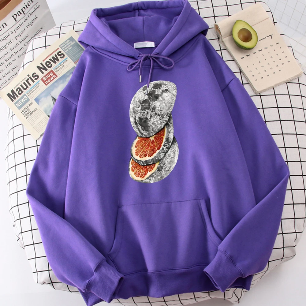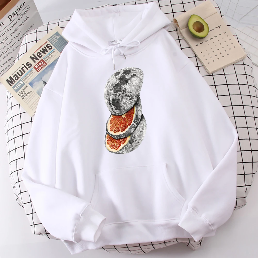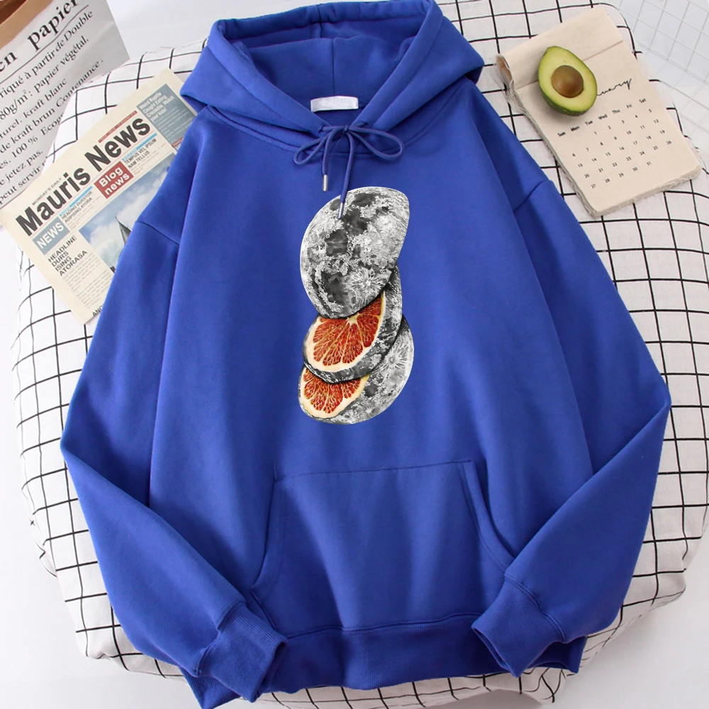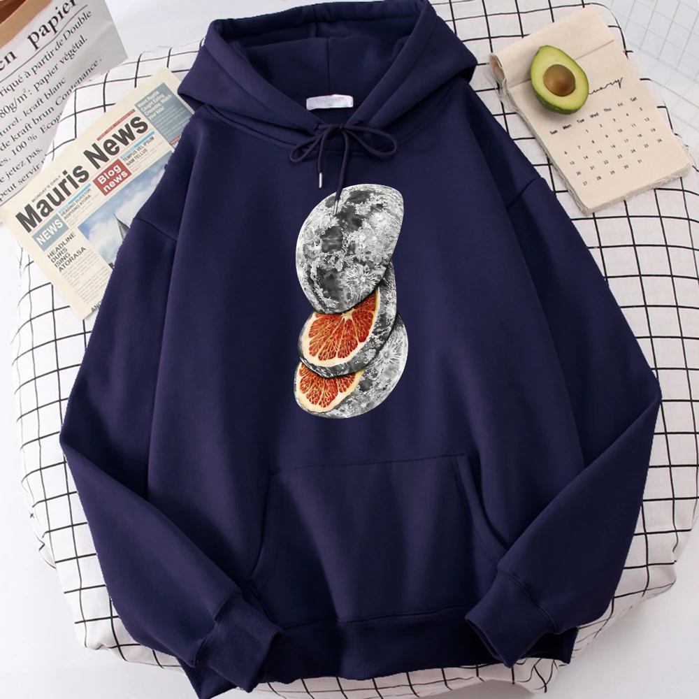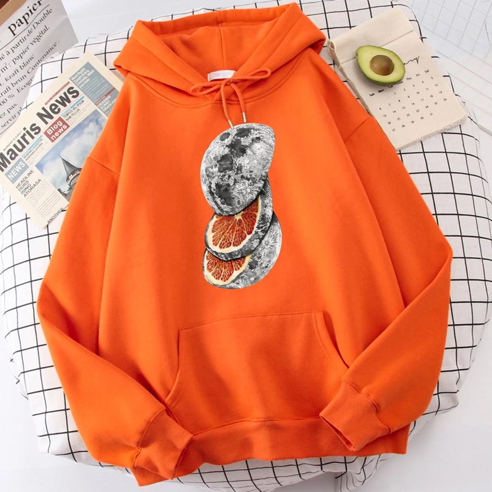 Толстовка мужская флисовая с капюшоном, модная мягкая теплая худи с принтом планеты фруктов, оранжевых ломтиков, свободная повседневная одежда на осень