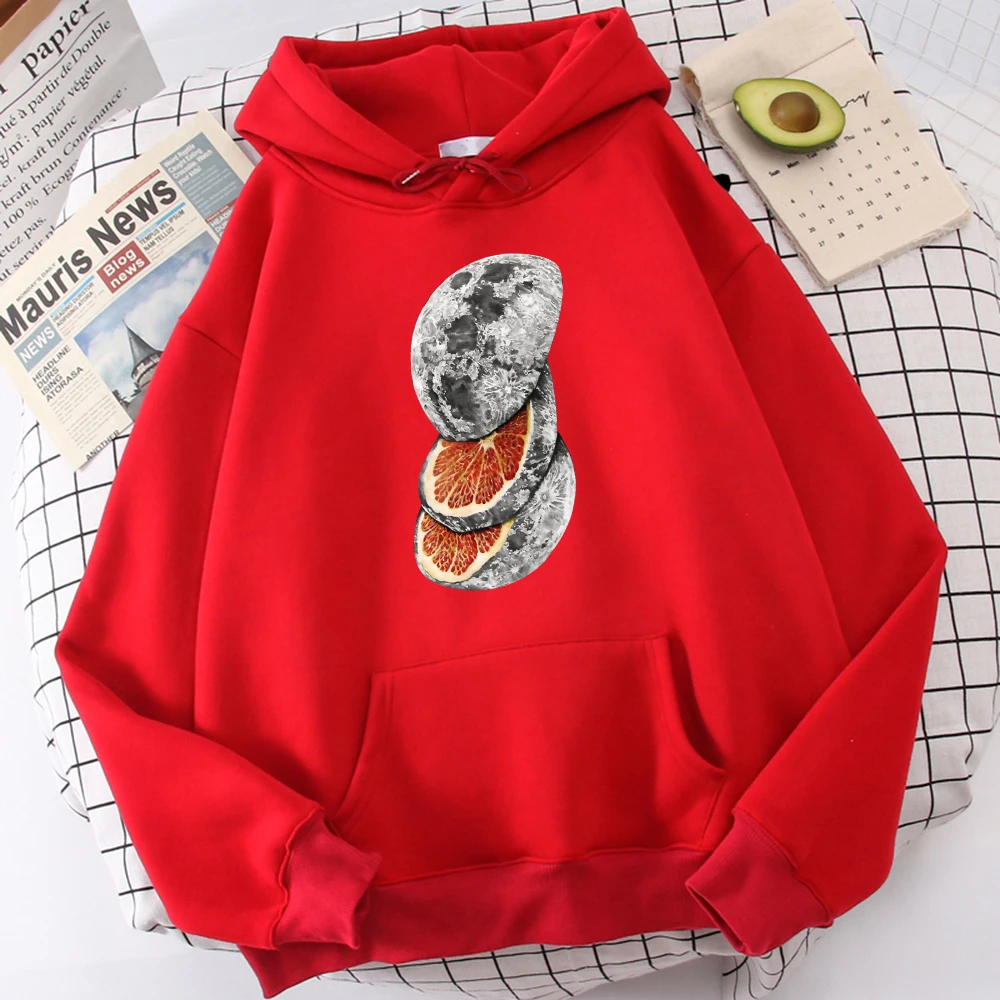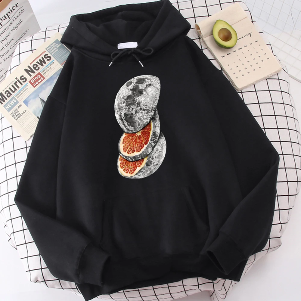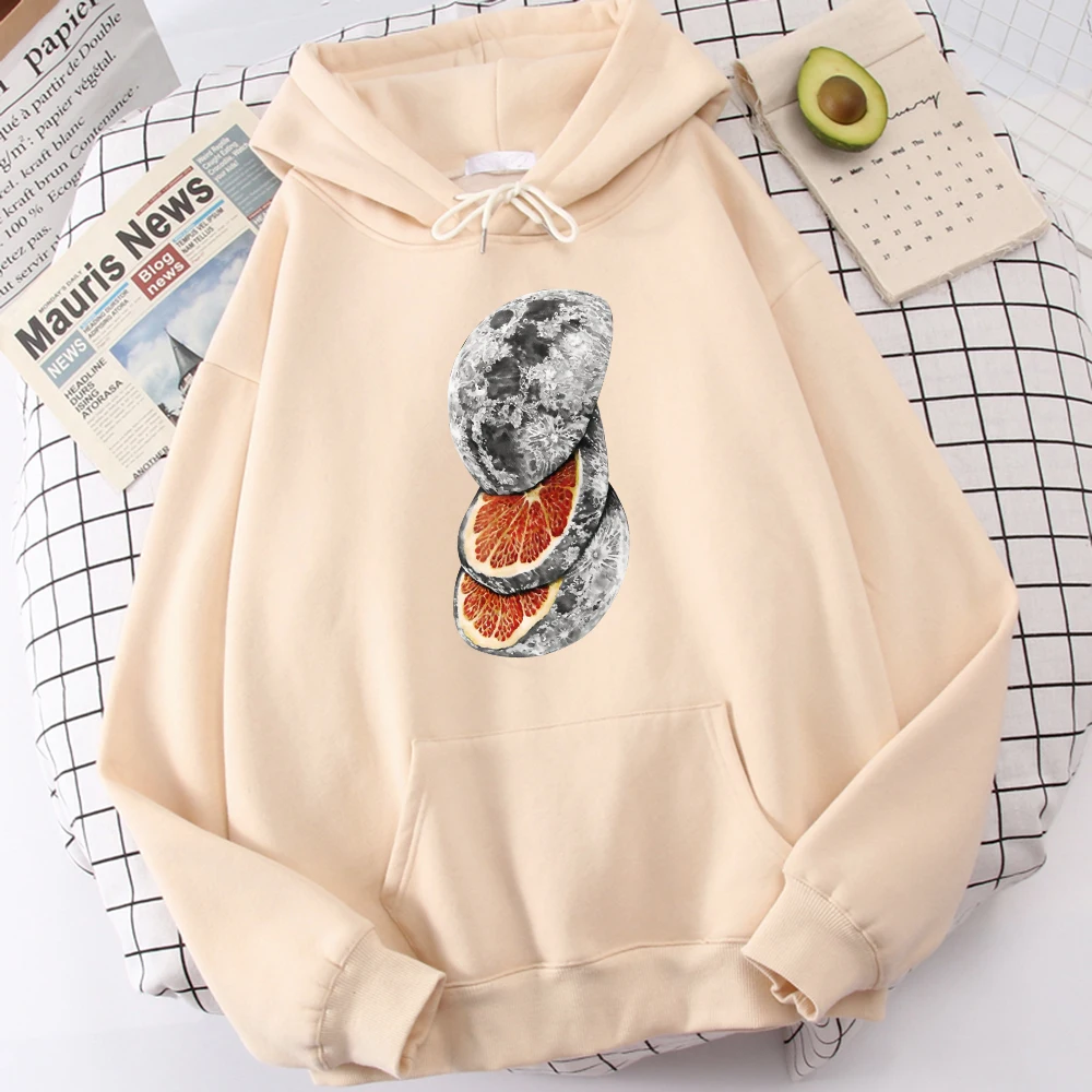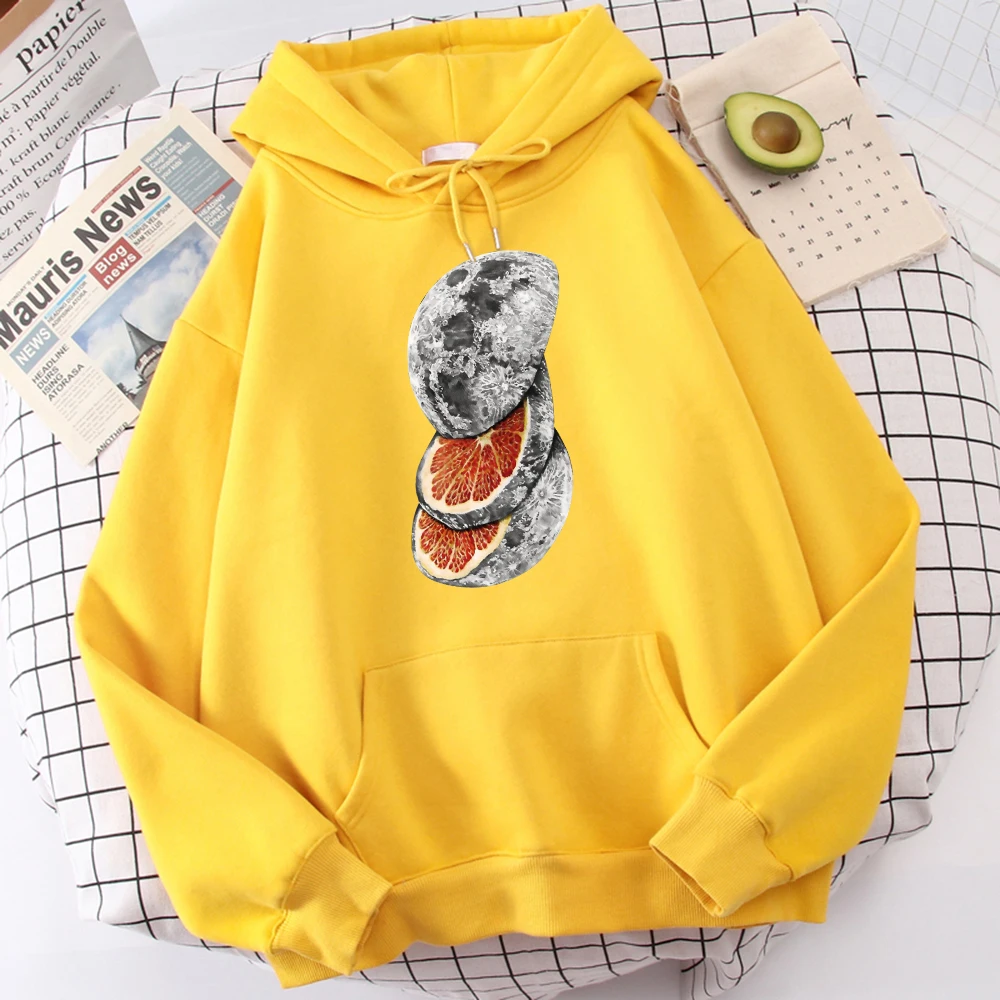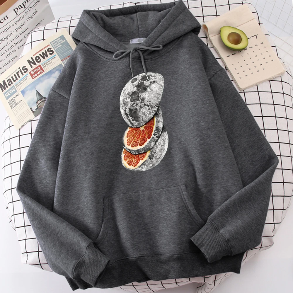 Толстовка мужская флисовая с капюшоном, модная мягкая теплая худи с принтом планеты фруктов, оранжевых ломтиков, свободная повседневная одежда на осень
