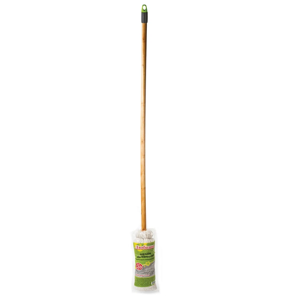 Швабра деревянная веревочная ЛЮБАША, 603633 хлопок, 120 см, ворс 30 см