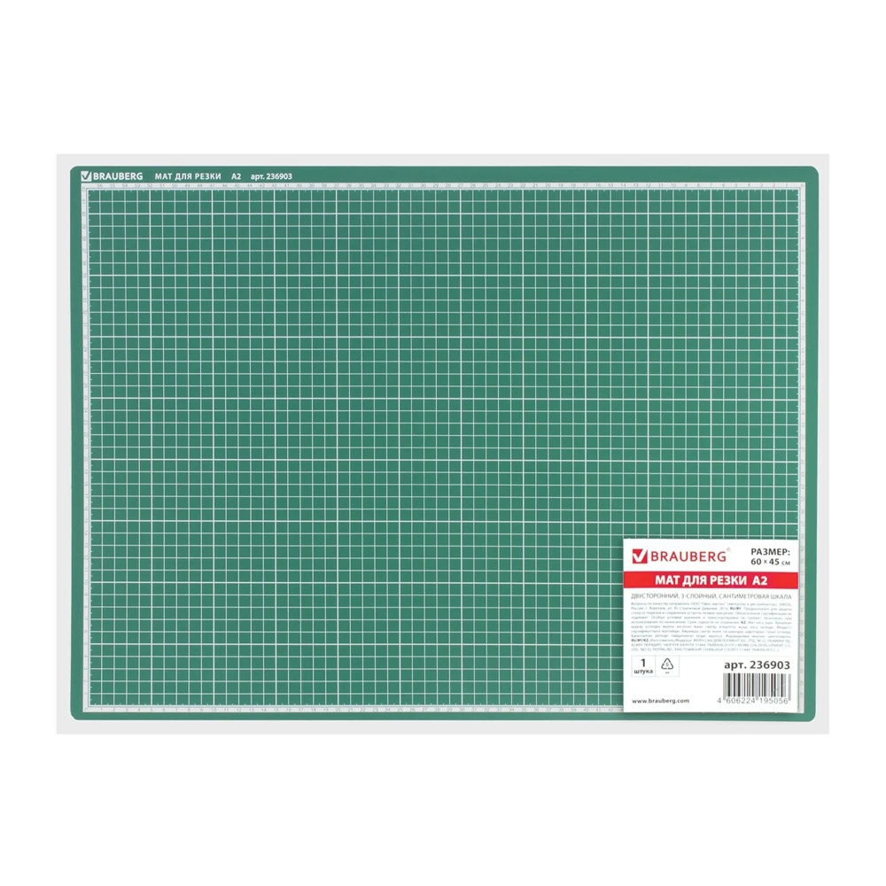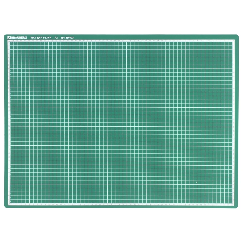 Коврик для резки BRAUBERG 236903 3-слойный, А2 (600х450 мм), двусторонний, толщина 3 мм, зеленый