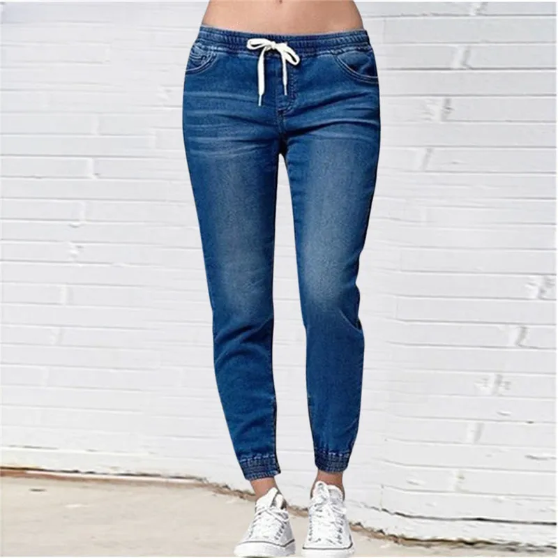 Женские однотонные джинсовые брюки, синие повседневные джинсы на шнуровке с высокой талией, модные женские свободные прямые брюки, джинсы для мам, осень 2021