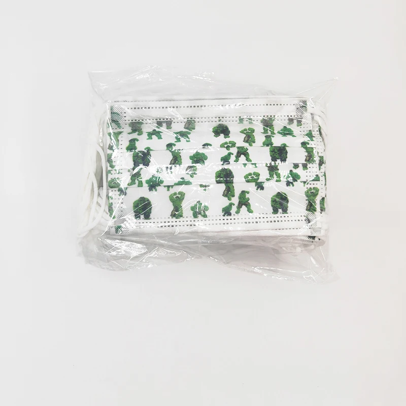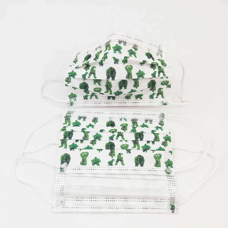 Нетканые одноразовые маски изготовлены из 3 слоев материалов (первый слой-Нетканая ткань, второй слой-выдувная ткань из расплава, а третий слой-Нетканая ткань). Он безопасен и безопасен в использовании, дышащий и милый, и его рисунок делает его практичным и стильным. В 3-слойная Нетканая ткань дизайн может предотвратить попадание пыли, эластичный ухо плечевой ремень позволяет легко снимать и надевать цепочку и не давят на уши.