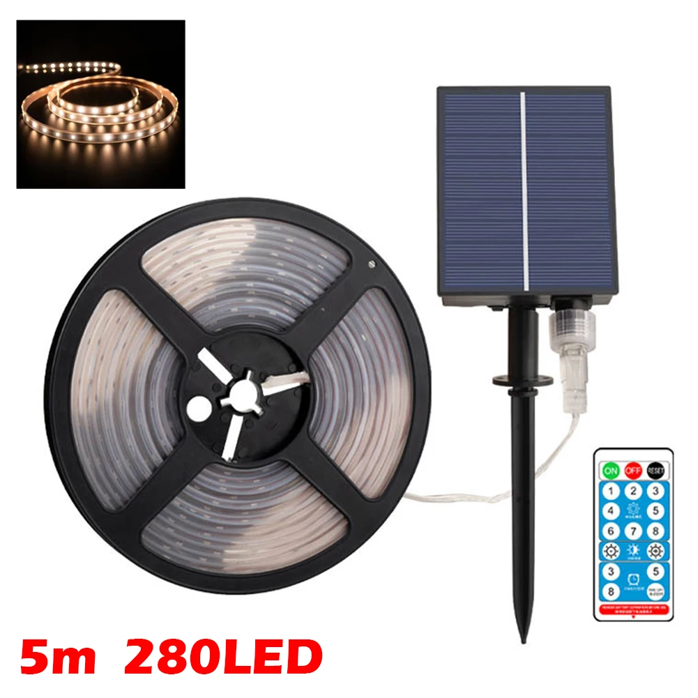Светодиодная лента на солнечной батарее, 8 режимов освещения, уличная водонепроницаемая, удаленное обновление, яркость, домашний декор для рождественского сада