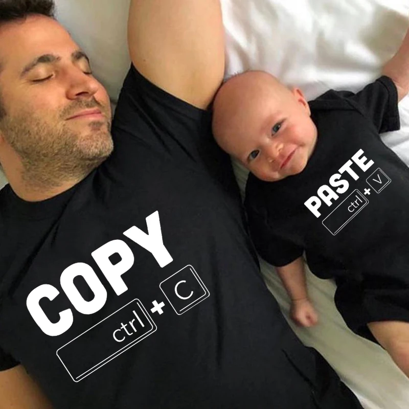 Смешная футболка для папы, летняя, с надписью, с надписью Ctrl, C, V, футболки в тон, хлопковые комбинезоны для детей