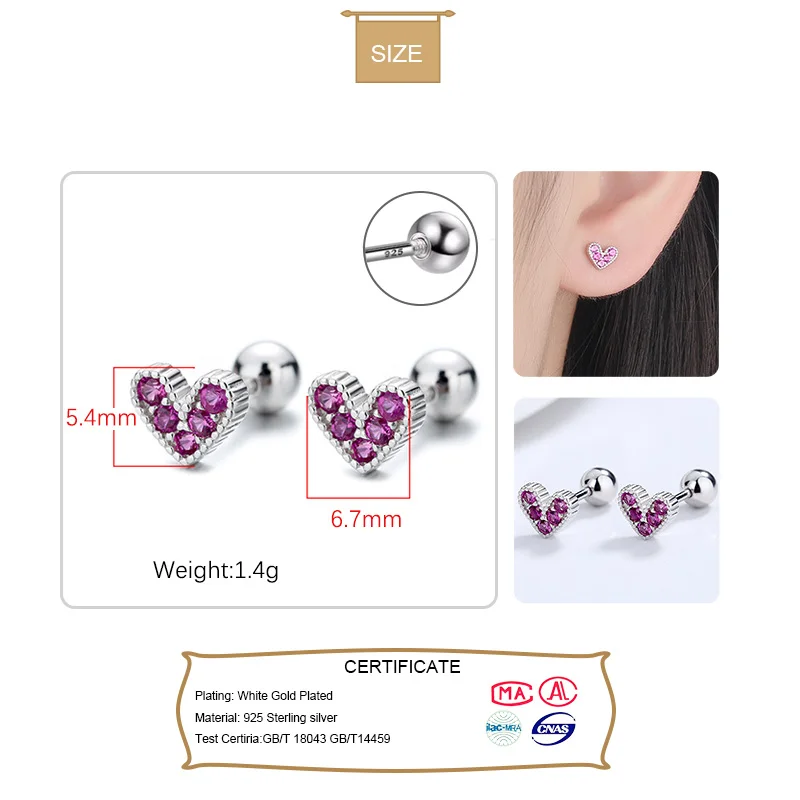 Trustdavis Настоящее серебро 925 пробы модные Романтические сердца CZ бусины винтовые серьги для женщин Свадебная вечеринка ювелирные изделия DA2213