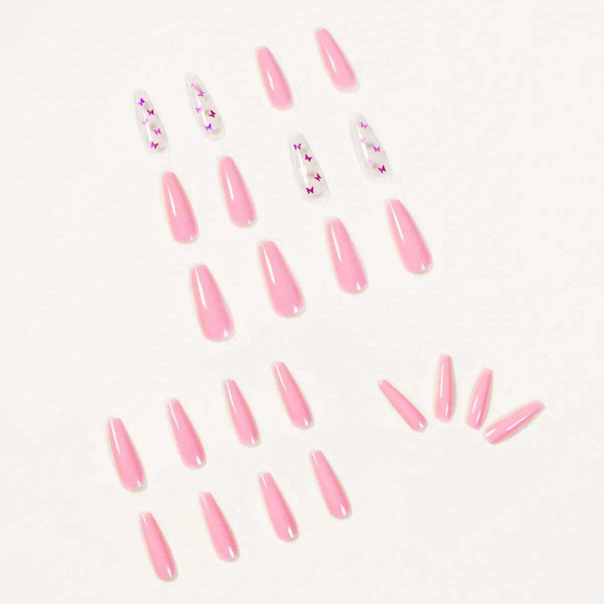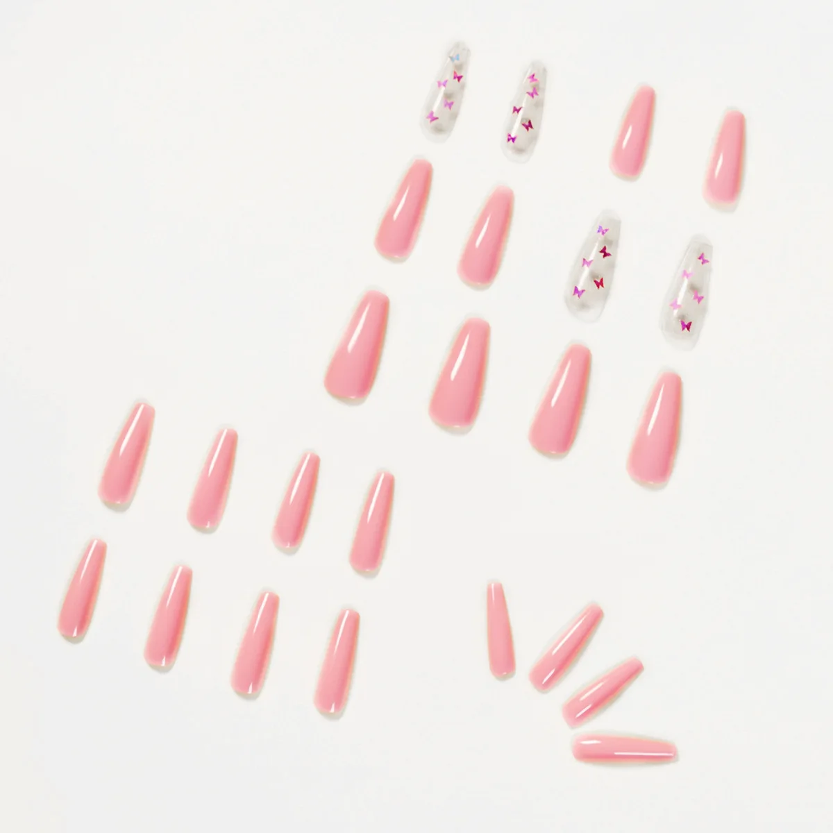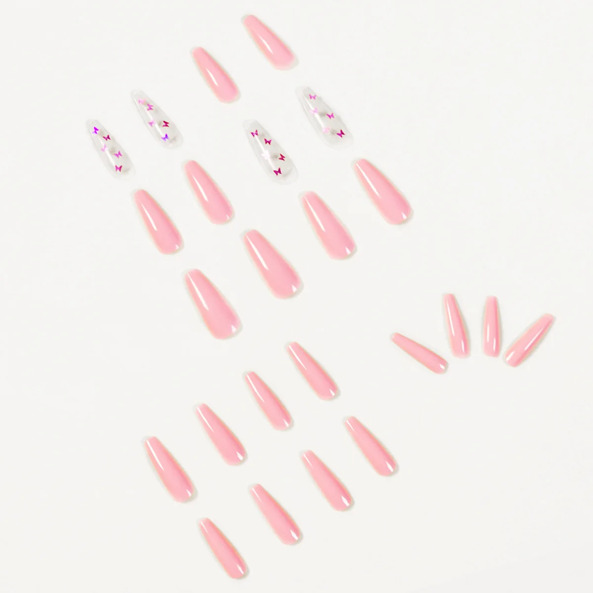 Накладные ногти, 24 шт., розовая бабочка, длинные, плоские, верхние...