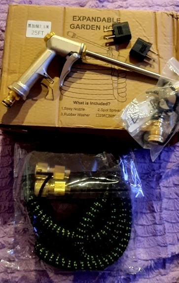 Посылка включает в себя:1 x расширяемый садовый шланг 25/50/75/100 футов1 x спрей G un1 х 1/2 коннектор1 х соединитель для раковины1 x универсальный разъем2 x Резиновое Кольцо