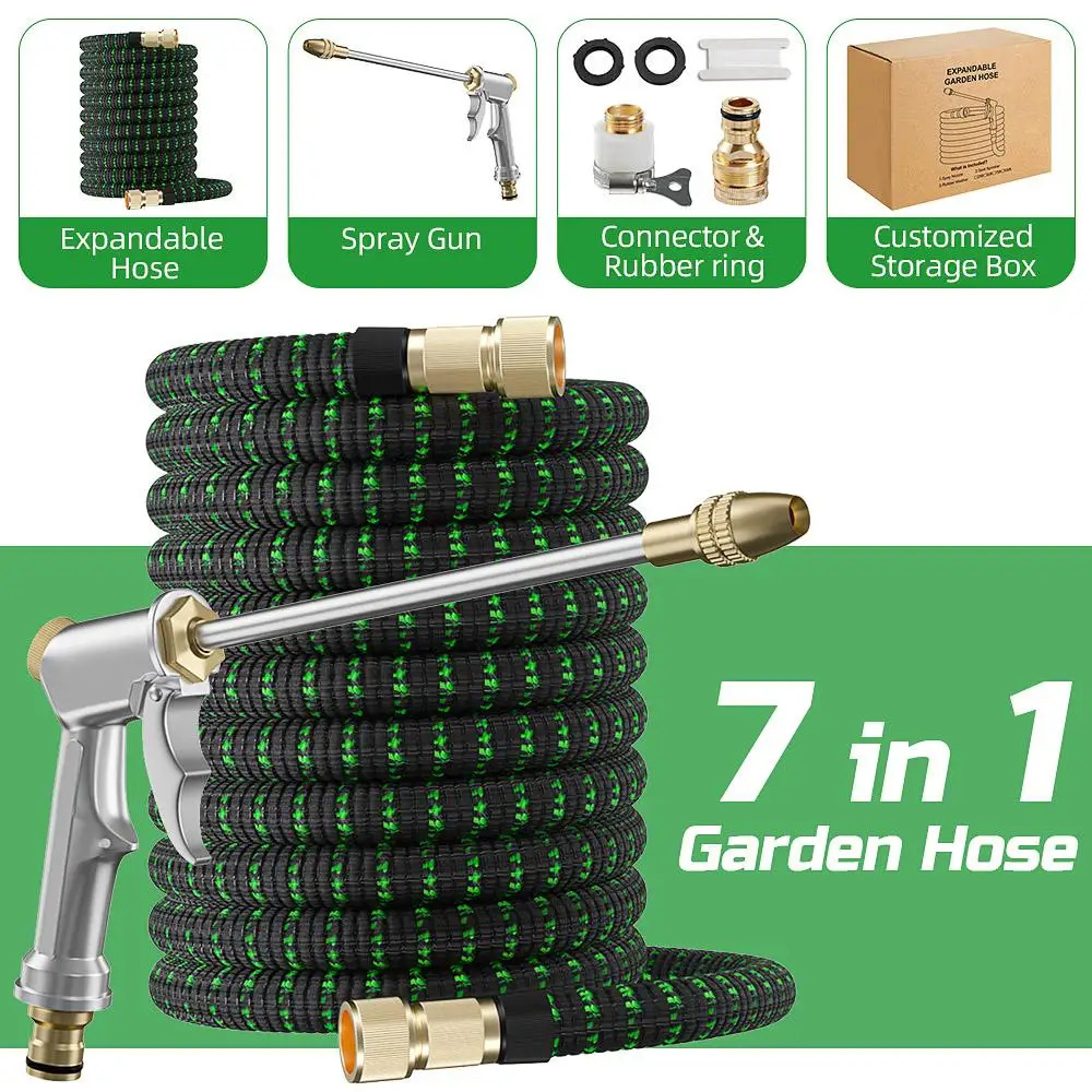Особенности товара:Название продукта: расширяемый садовый шлангМатериал: латекс + ТЭП + пластик + медьЦвет: черный + зеленыйМатериал ручки: сплавG un материал головки: медьРасширяется шланг: до 3 раз по длинеДлина: 7,5 m(25ft)/15 м (50ft)/22,5 м (75ft)/возможностью погружения на глубину до 30 м (100ft)Особенности: защита от катышков/Регулируемая/анти-истирание/гибкая/мягкаяПрименимые случаи: подходит для полива и очистки: сад, автомойка, RV, бассейн, лодка и так далее