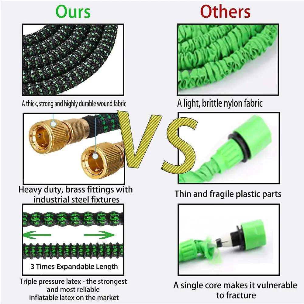 Особенности【Качественные материалы 】: расширяемый садовый шланг изготовлен из прочного двойного латекса, что делает шланг расширяющимся в 3 раза больше его длины с потоком воды и контрактами в течение нескольких минут, когда вода течет.【Flexible & Convenient】: они никогда не сотрутся и излому, твист, взрыв или запутываются во время использования, в результате чего сопряжение прост в обращении и хранении. И других цифровых продуктов шланги светильник вес, гибкий и достаточно долго для того, чтобы облегчить полива в саду.【Простота в использовании и хранении: садовый шланг изготовлен из мягкого материала, вам нужно только соединить кран и шланг вместе, никаких других инструментов не требуется, можно повесить непосредственно на крючок после завершения операции. Выдвижной, очень портативный, гибкий шланг, экономит место для хранения. (Крючки в комплект не входят)【Широкое использование 】: для автомобильной чистки, внутренних и наружных дверей и окон, очистки пола, садовый и садовый распылитель, гигиена дома и другие виды применения
