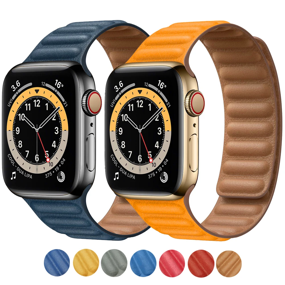 Ремешок кожаный для Apple watch 7 band 40 мм 44 мм 42 мм 38 мм 42 мм 1:1, магнитный браслет для iWatch series 7 6 5 4 3 SE