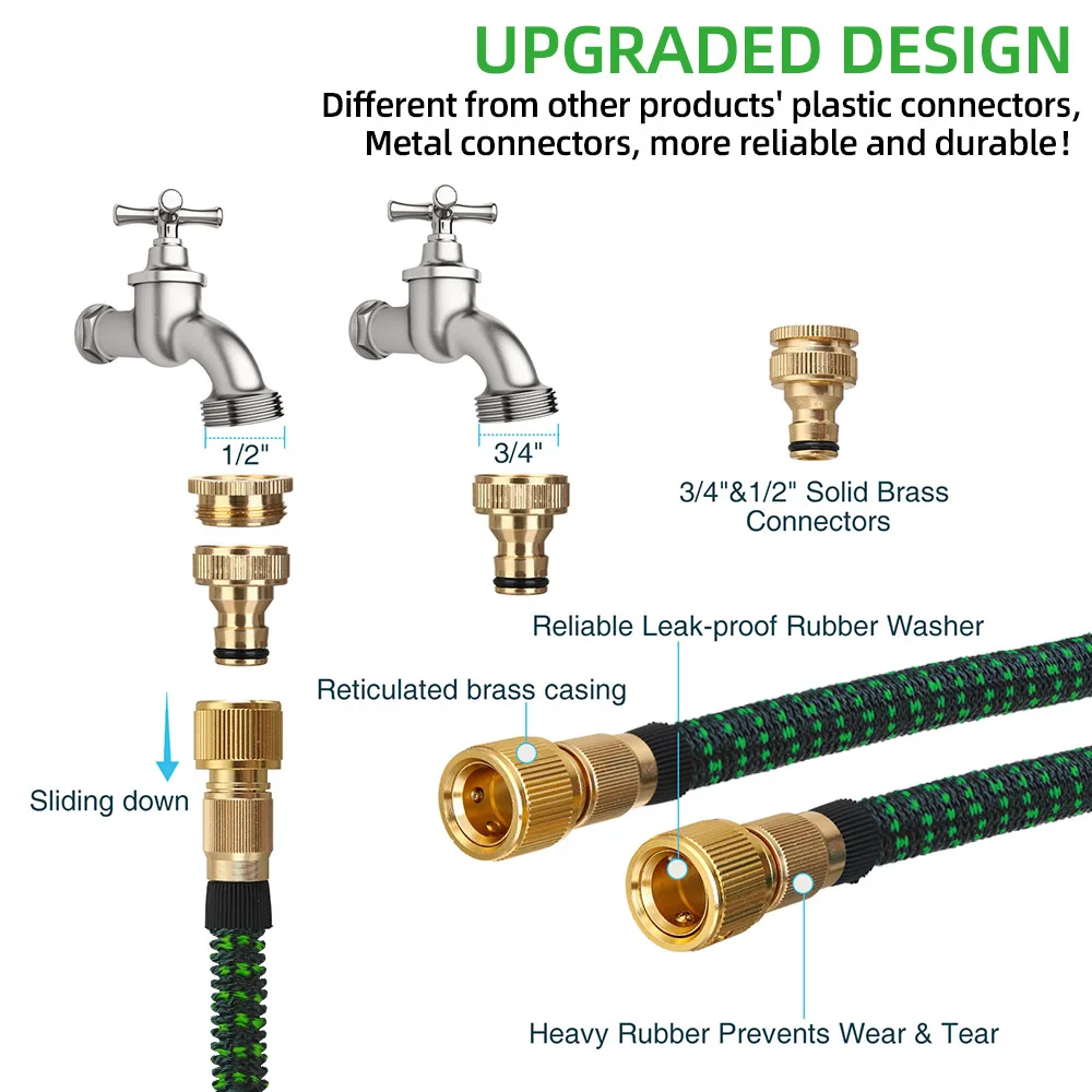 Особенности【Качественные материалы 】: расширяемый садовый шланг изготовлен из прочного двойного латекса, что делает шланг расширяющимся в 3 раза больше его длины с потоком воды и контрактами в течение нескольких минут, когда вода течет.【Flexible & Convenient】: они никогда не сотрутся и излому, твист, взрыв или запутываются во время использования, в результате чего сопряжение прост в обращении и хранении. И других цифровых продуктов шланги светильник вес, гибкий и достаточно долго для того, чтобы облегчить полива в саду.【Простота в использовании и хранении: садовый шланг изготовлен из мягкого материала, вам нужно только соединить кран и шланг вместе, никаких других инструментов не требуется, можно повесить непосредственно на крючок после завершения операции. Выдвижной, очень портативный, гибкий шланг, экономит место для хранения. (Крючки в комплект не входят)【Широкое использование 】: для автомобильной чистки, внутренних и наружных дверей и окон, очистки пола, садовый и садовый распылитель, гигиена дома и другие виды применения