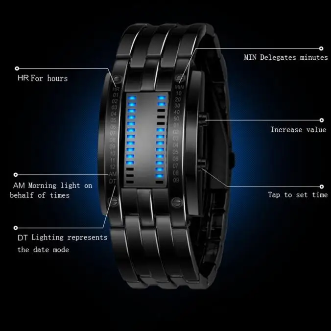 Роскошные часы для влюбленных мужчин и женщин из нержавеющей стали Синие двоичные светящиеся Спортивные Часы Со светодиодным электронным дисплеем модные женские часы #20