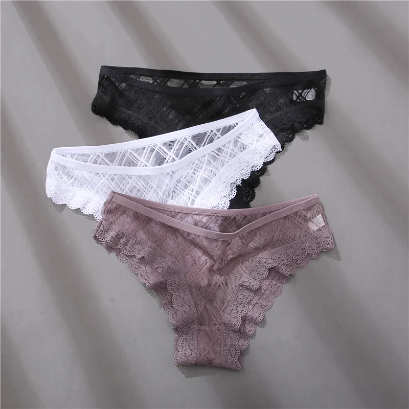 Трусы сетчатые с низкой посадкой, 3 шт.компл., большие размеры, M-2XL кружева, прозрачные сексуальные трусики, нижнее белье