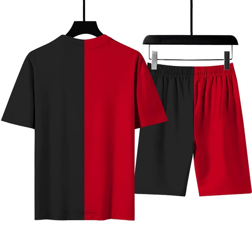 2021 стильный цветной спортивный костюм с коротким рукавом, комплект из двух предметов, футболка с круглым вырезом и шорты, мужской свободный спортивный костюм, спортивная одежда для повседневной носки