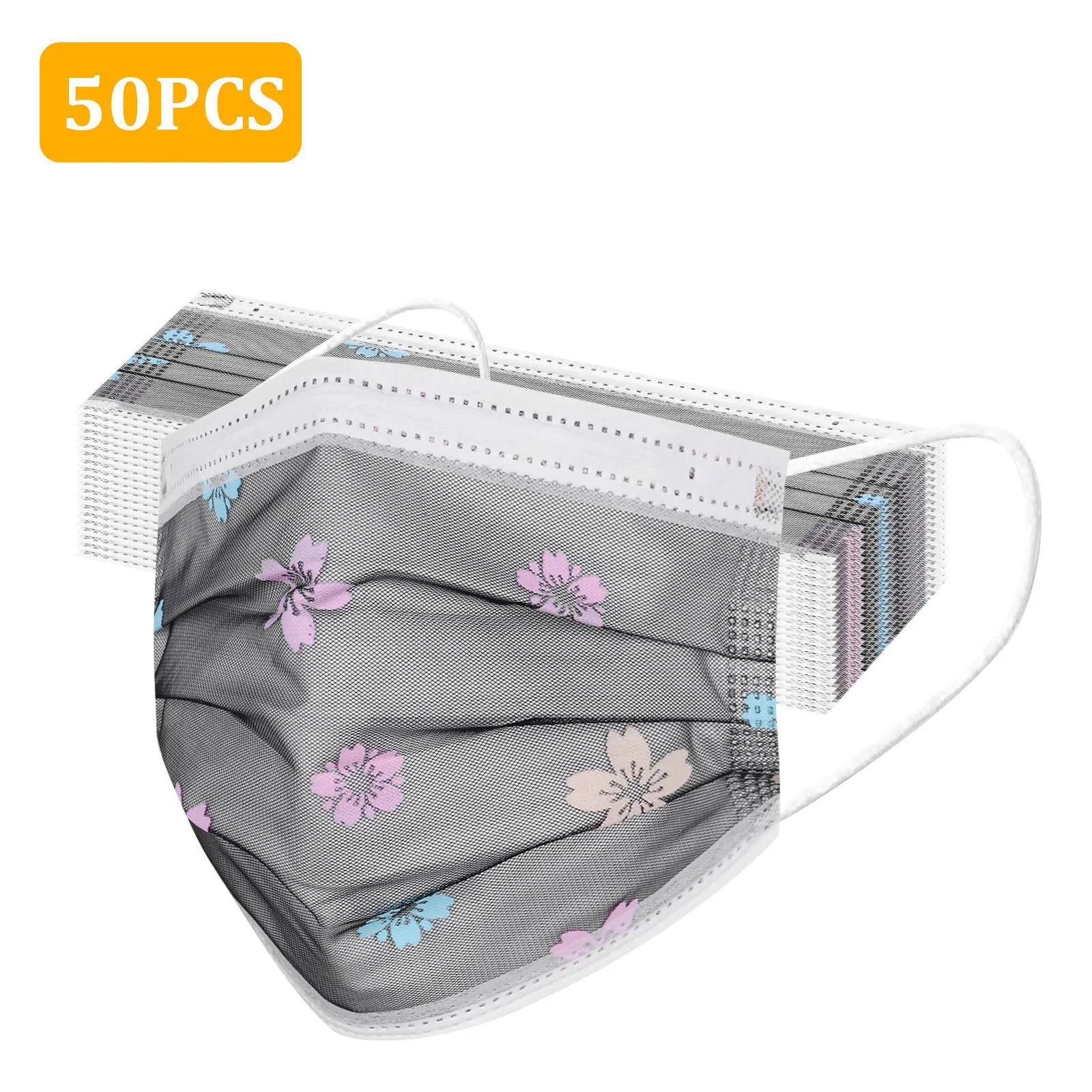 50 шт., одноразовые маски для лица с цветами