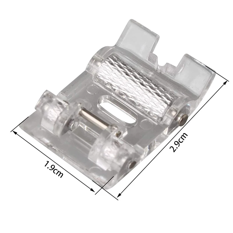 Лапка изготовлена из прозрачного пластика с металлическими роликами. Помогает кормить ткань и предотвратить поломку иглы, разрыв нити,
