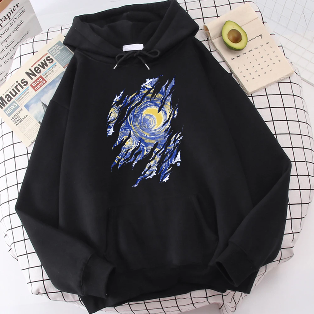 Худи с принтом звездной ночи Винсента Ван Гога, женские толстовки в стиле хип-хоп, свободная толстовка, осенняя флисовая толстовка в стиле Харадзюку, уличная одежда с круглым вырезом для мужчин