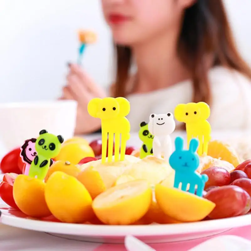 10 шт. Милая Мини Ферма Животных Мультяшные пищевые медиаторы детская закуска торт десерт фрукты вилки обед бенто аксессуары Прямая поставка
