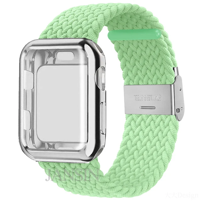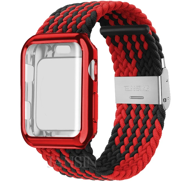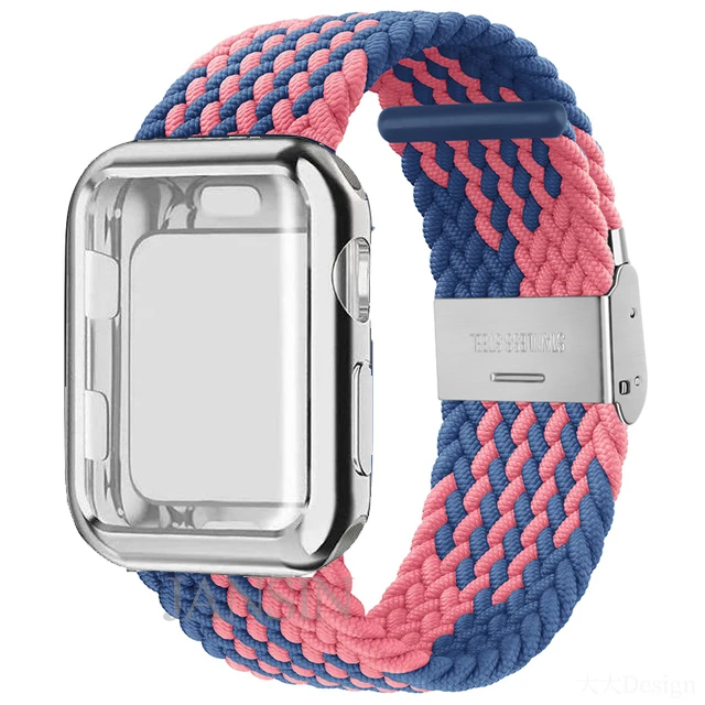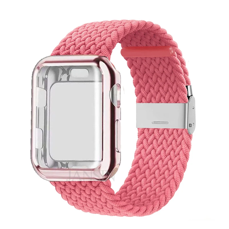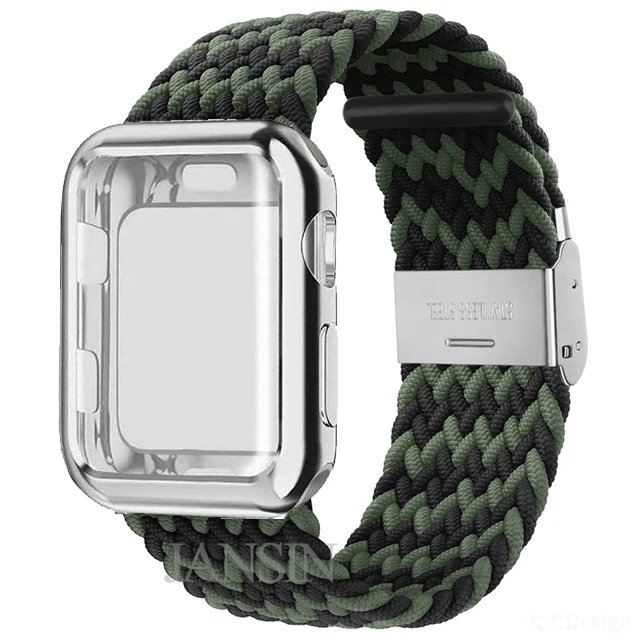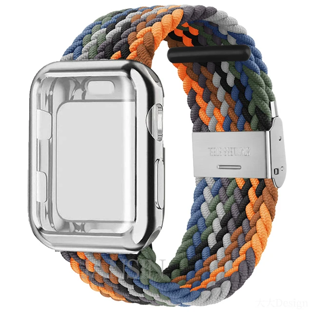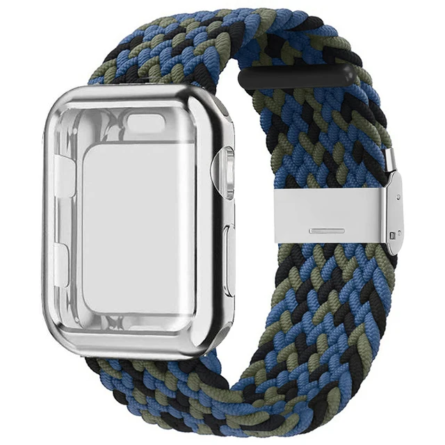 Плетеный соло-браслет + чехол для Apple Watch Band 42 мм 38 мм 40 мм 44 мм, регулируемый эластичный нейлоновый браслет для iWatch SE Series 6 5 4 3 2