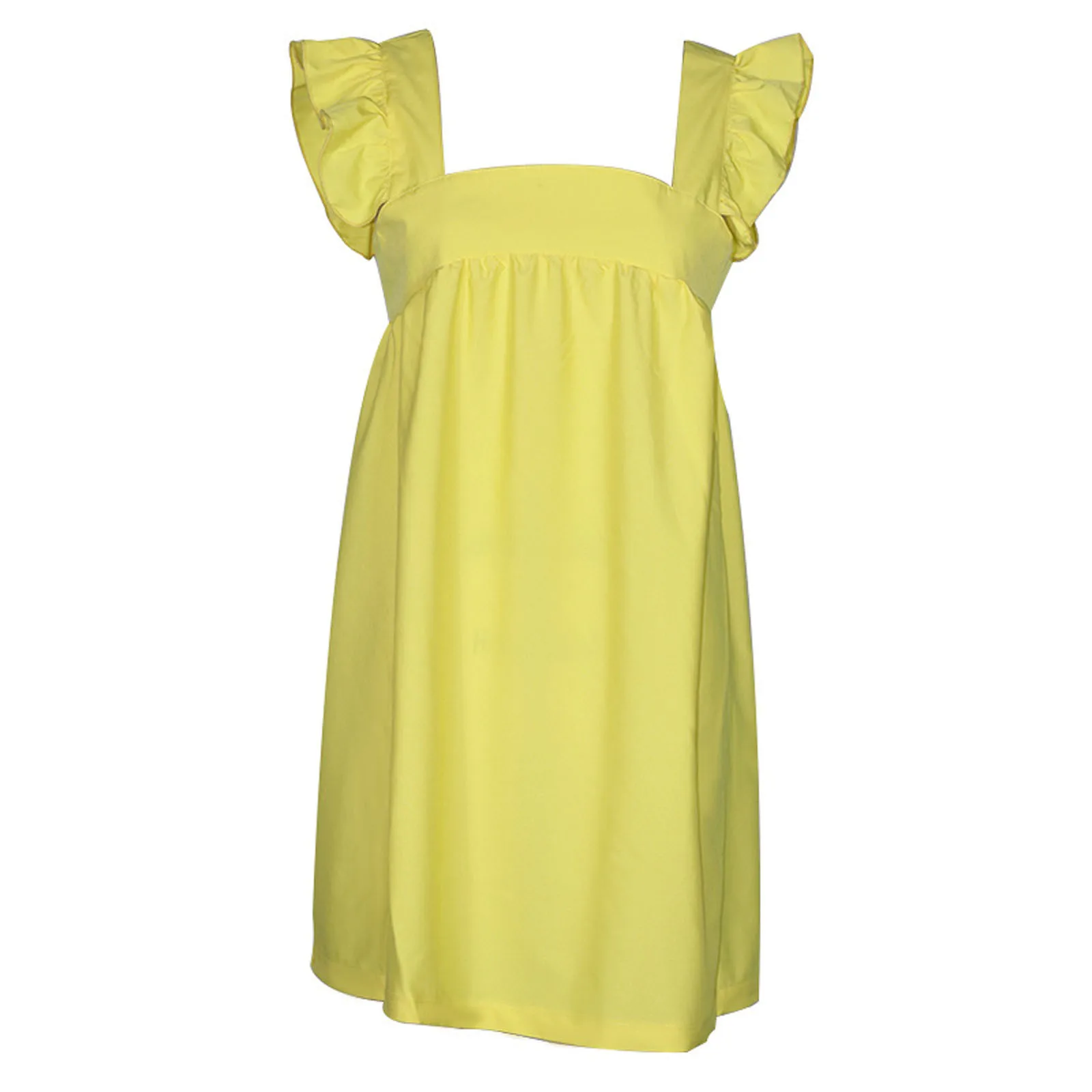 Женское мини-платье с оборками, летнее однотонное свободное платье ...