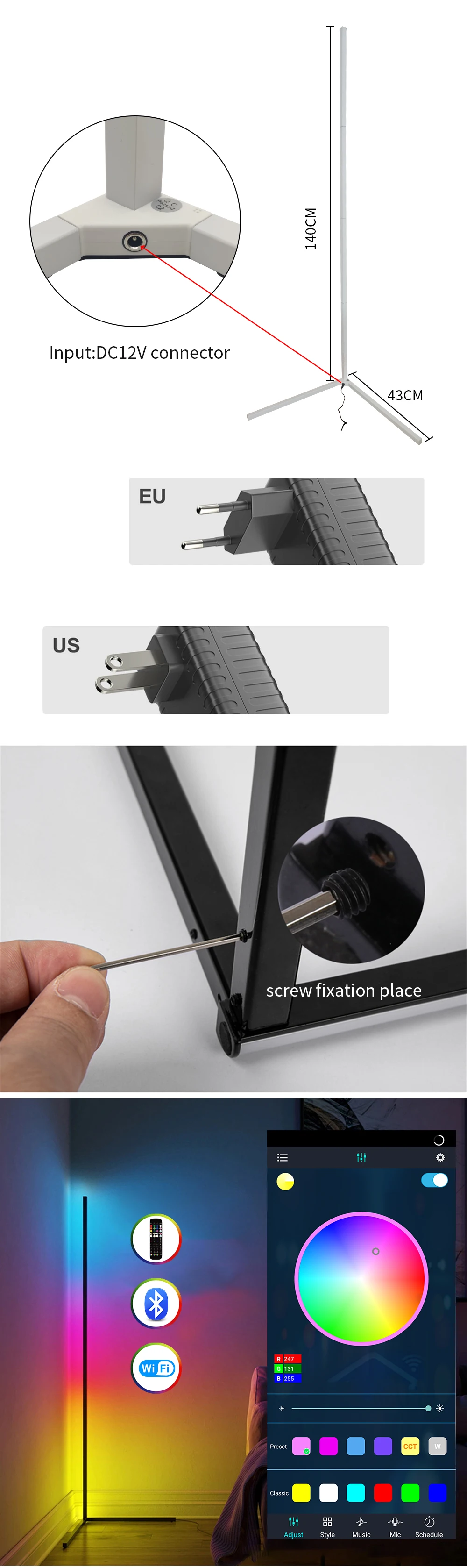 RGB светодиодная Напольная Лампа, комнатное украшение для дома, угловая современная лампа для гостиной, римская декоративная стоячая лампа с bluetooth и Wi-Fi