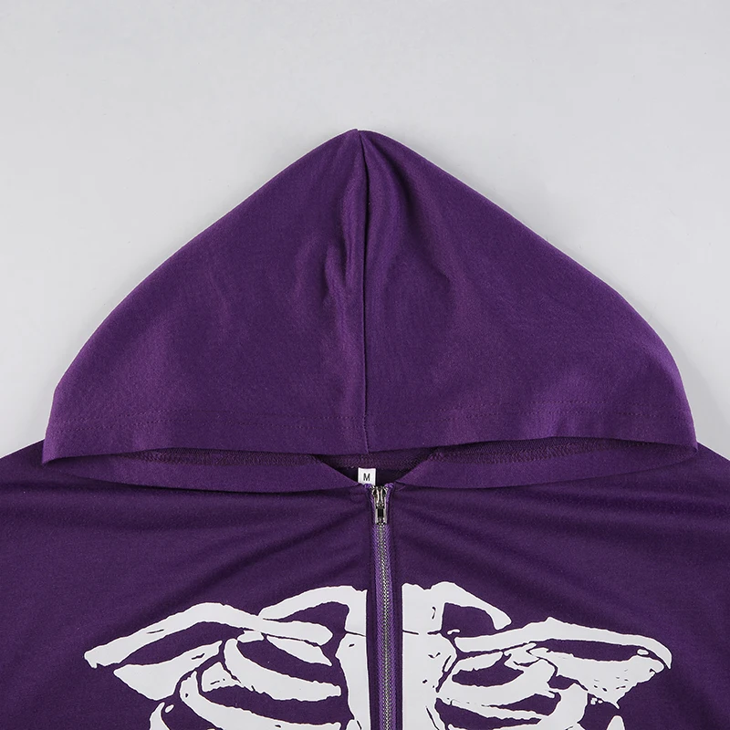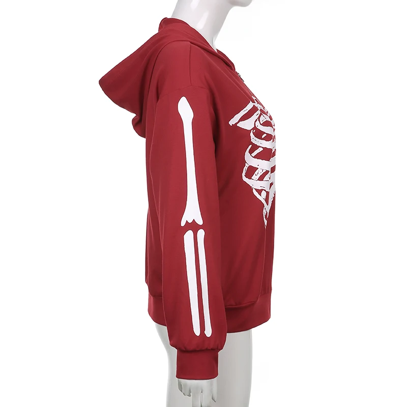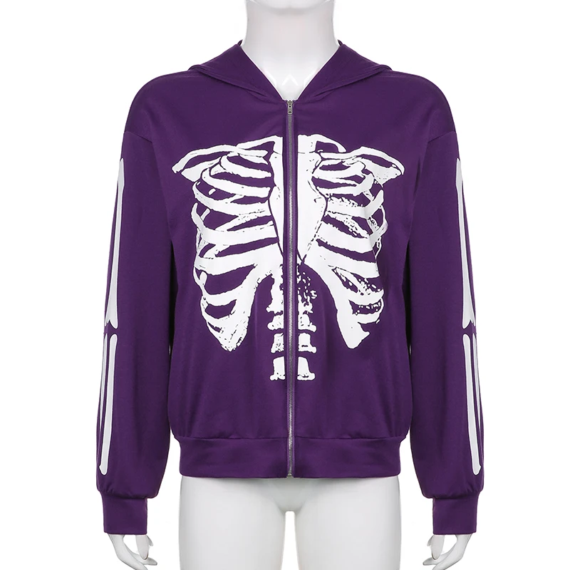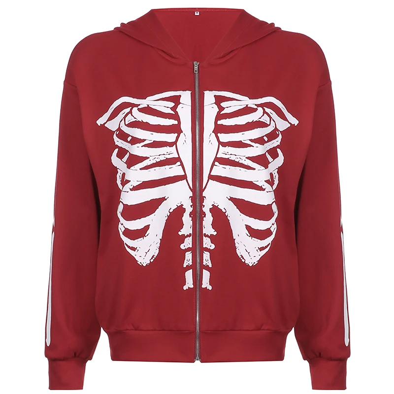Толстовка Женская в стиле Харадзюку, на молнии, с принтом скелета