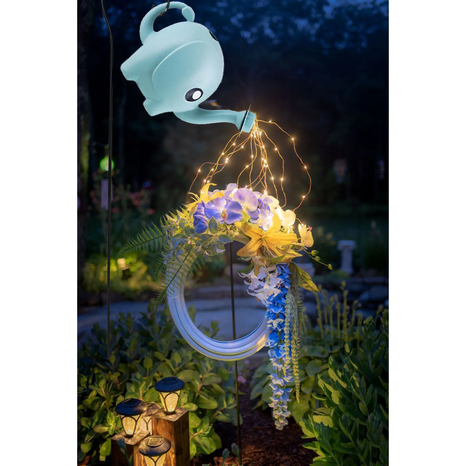 Лейка распыляет ваш сад сказочным светом,Создайте уникальное фокусное место в вашем саду после темноты, развязав каскад самых маленьких огней. Применение Питание от 3 батареек AA, нанизаны теплые белые светодиоды microdot Нежная медная проволока-малейший ветерок принесет движения, добавляя К волшебству. Аккумулятор остается сухим на внутреннем крючке, кронштейн можно разобрать для сборки Плоская лейка, медная проволока с теплыми белыми светодиодами Защита от замораживанияСпецификация:
