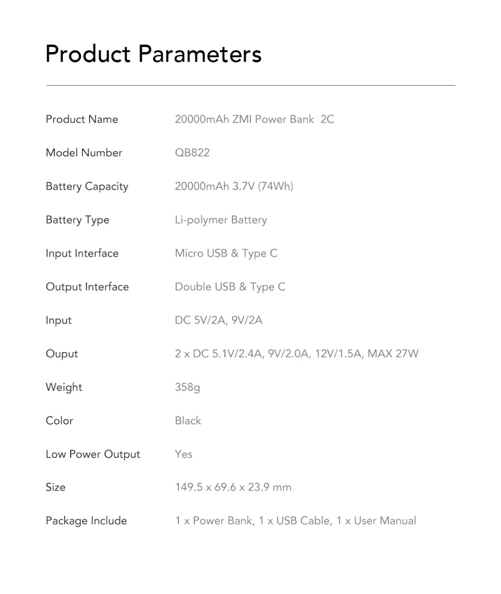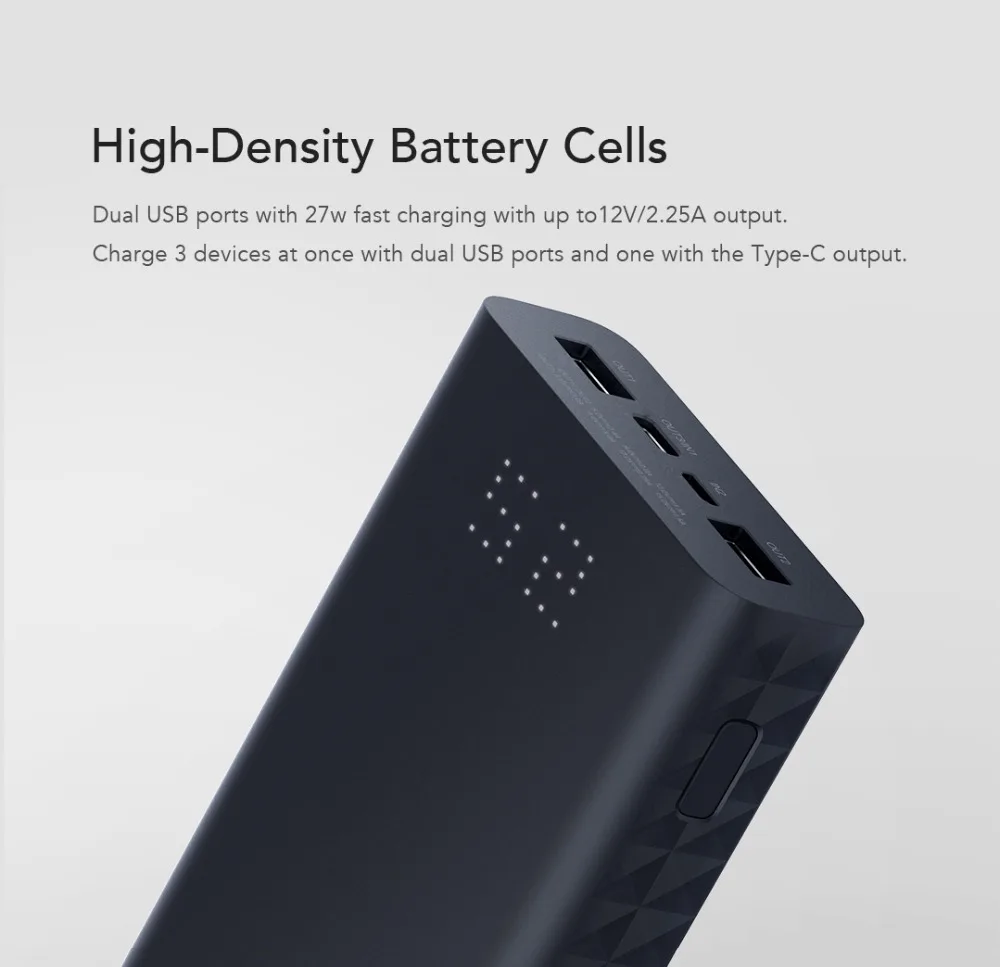 Внешний аккумулятор Power Bank Xiaomi Mi ZMI 20000 mAh QB822 27w Быстрая зарядка